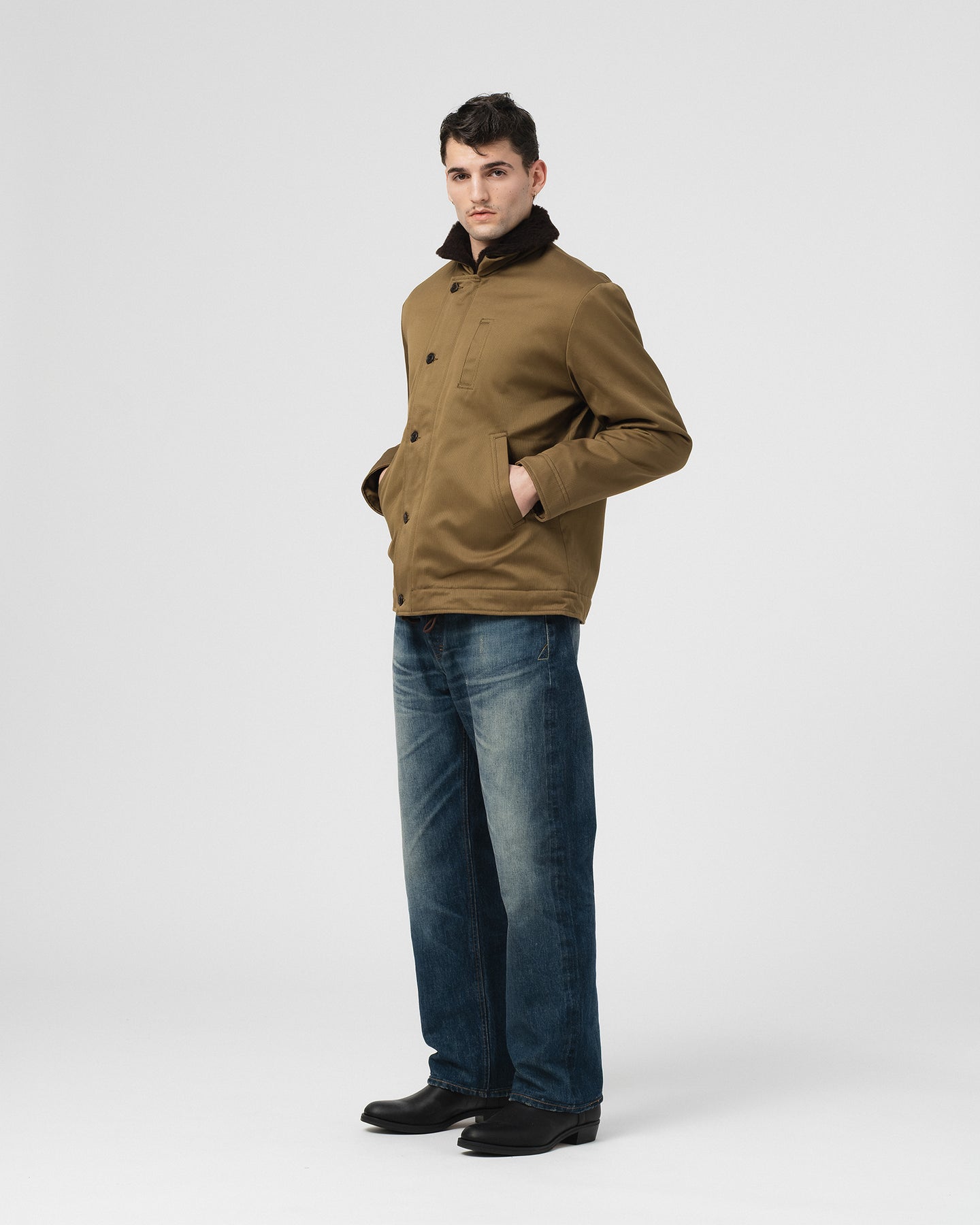 Our interpretation of the classic deck jacket comes in 100% cotton Bedford Cords from our Belgian mill, featuring 2 front hip pockets (lined with a wool blend) and a chest pocket. The body was lined with wool, the sleeves with a wool blend and there are storm cuffs in a knitted rib. Also has an interior pocket.