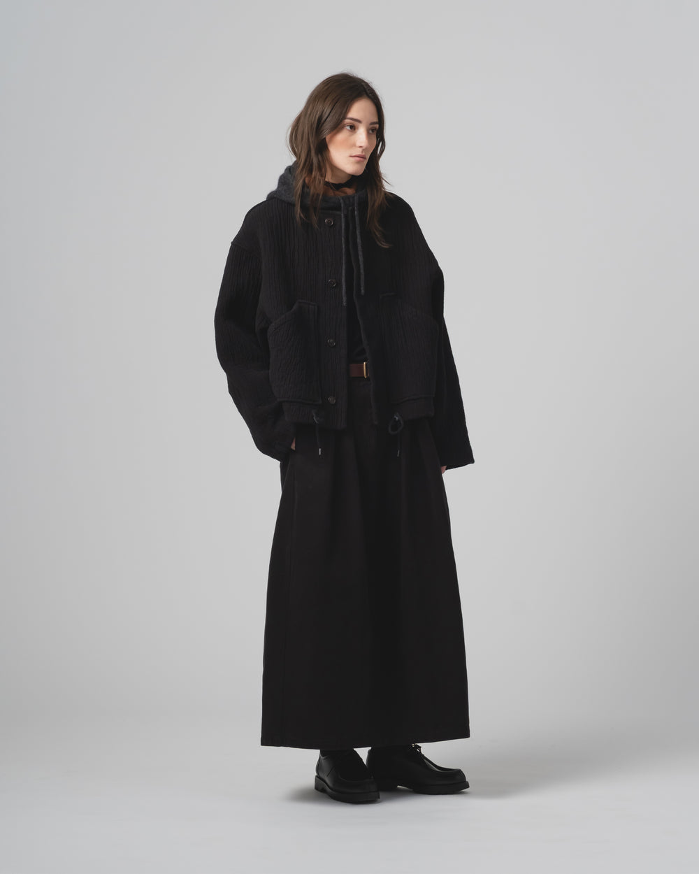 Based on a vintage army jacket, our Nuclear Jacket fits loose and boxy. A nonchalant style with a lot of attitude, meant to be worn loosely. It features 2 large front pockets, corozo buttons and a drawstring in the hem.