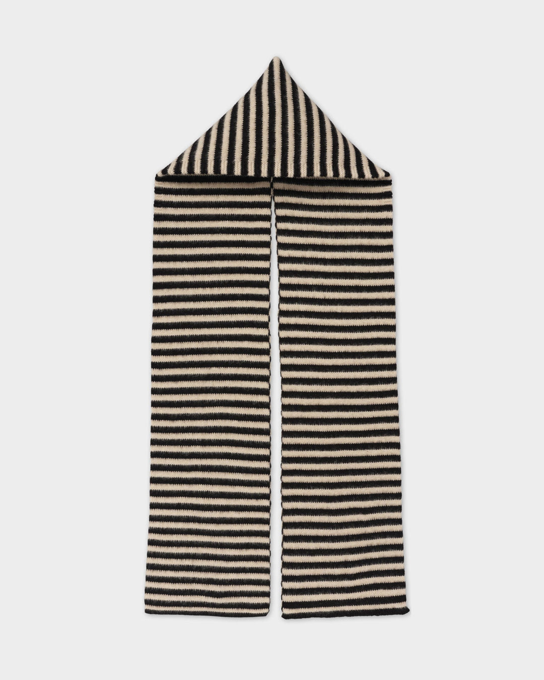 JG Striped Brushed Hood Scarf Black/Oatmeal