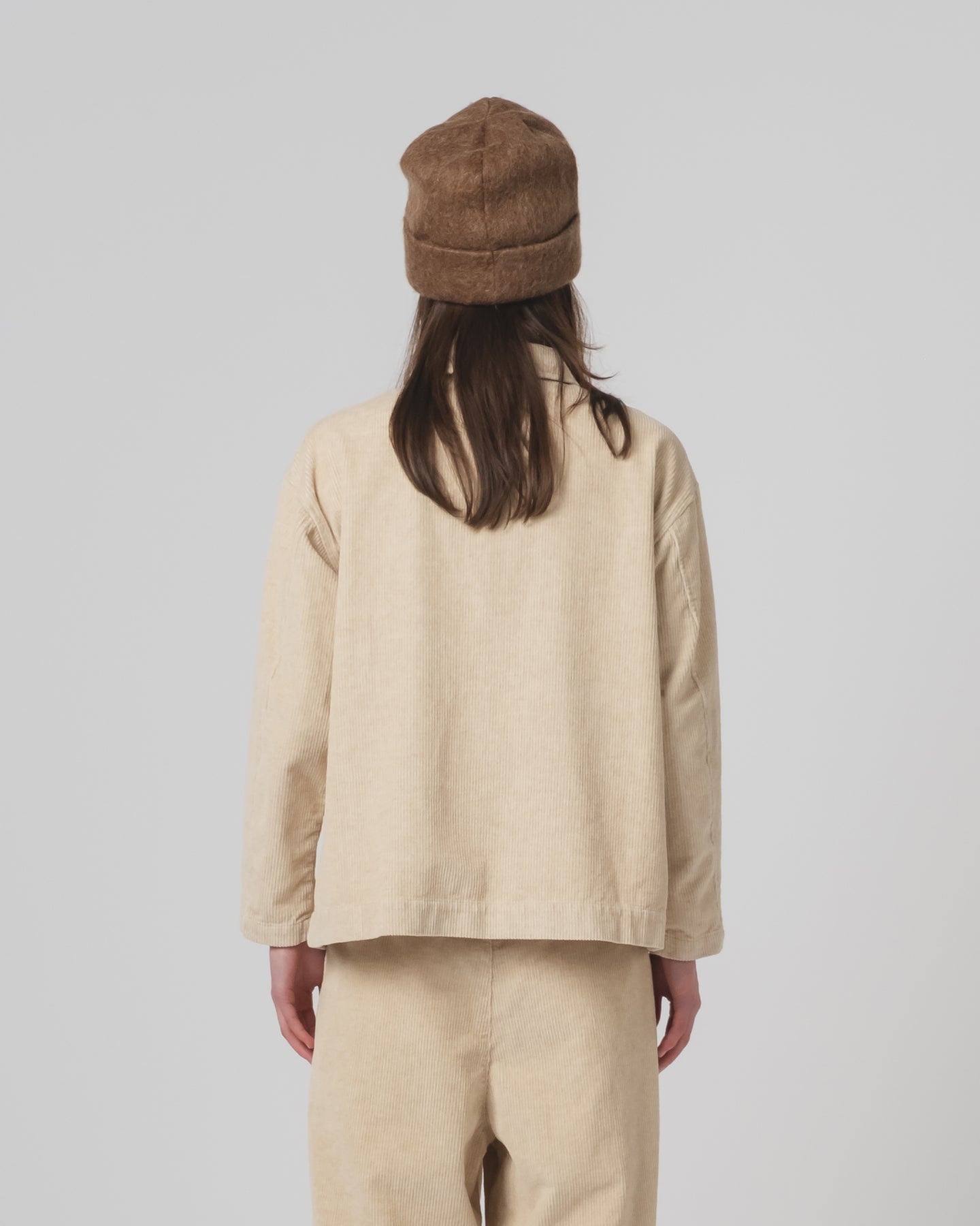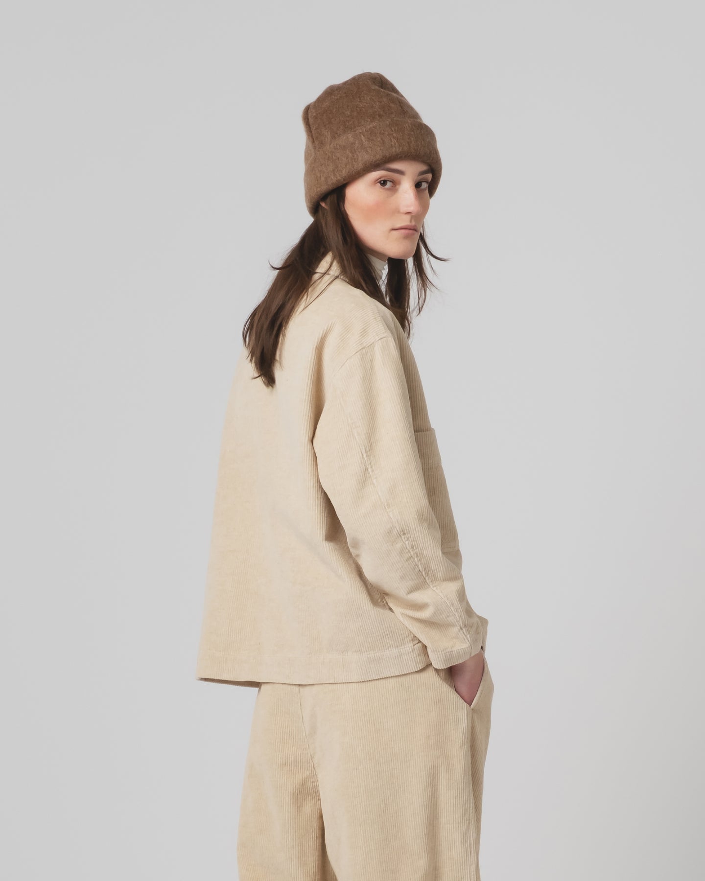 This cropped boxy shirt blends comfort and versatility for the colder season. Cut from natural cord, it offers a warm, textured feel while maintaining a relaxed silhouette. Finished with two chest pockets and a button-up closure for easy wear.