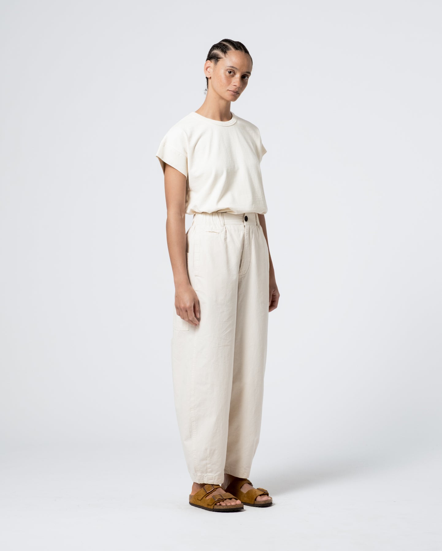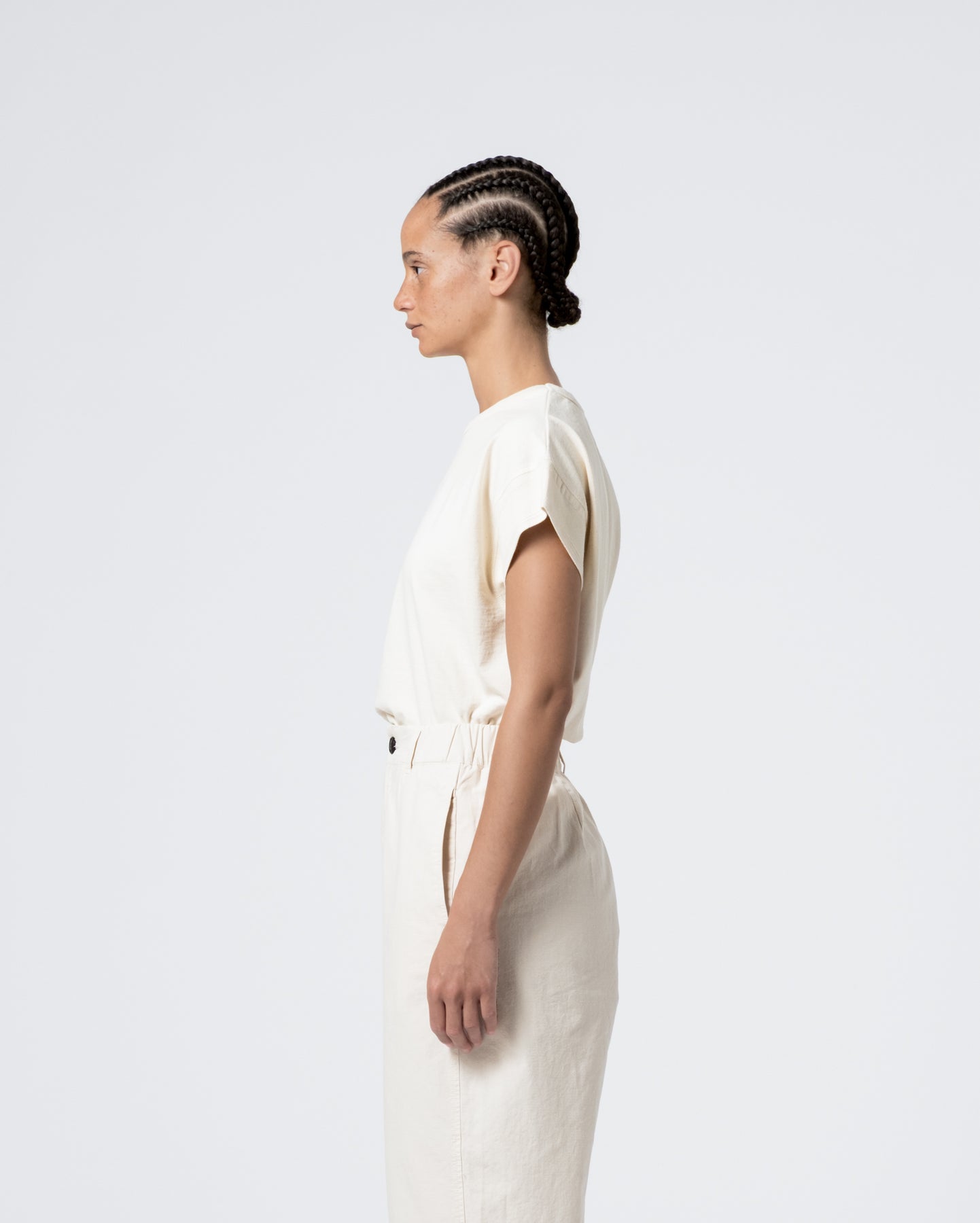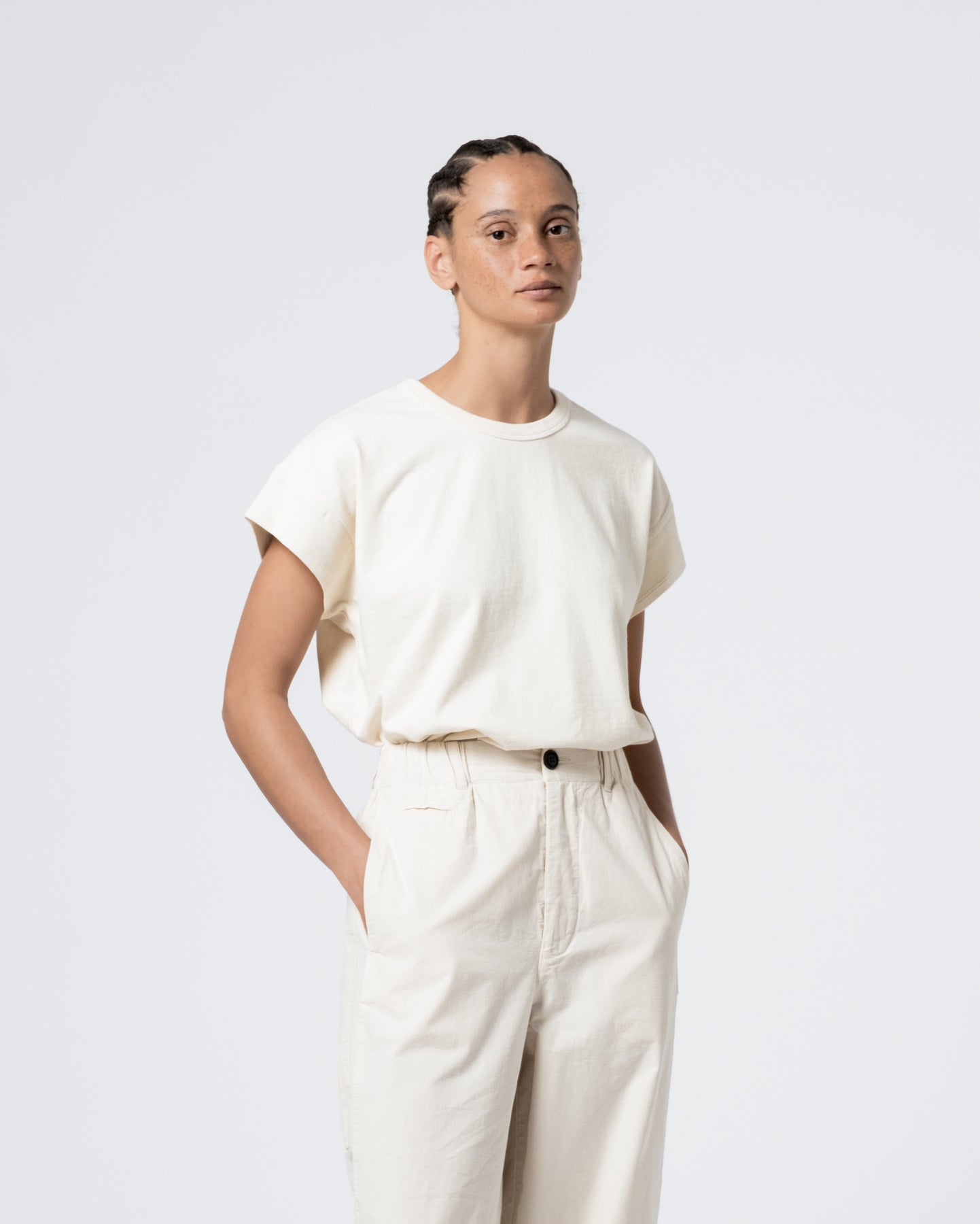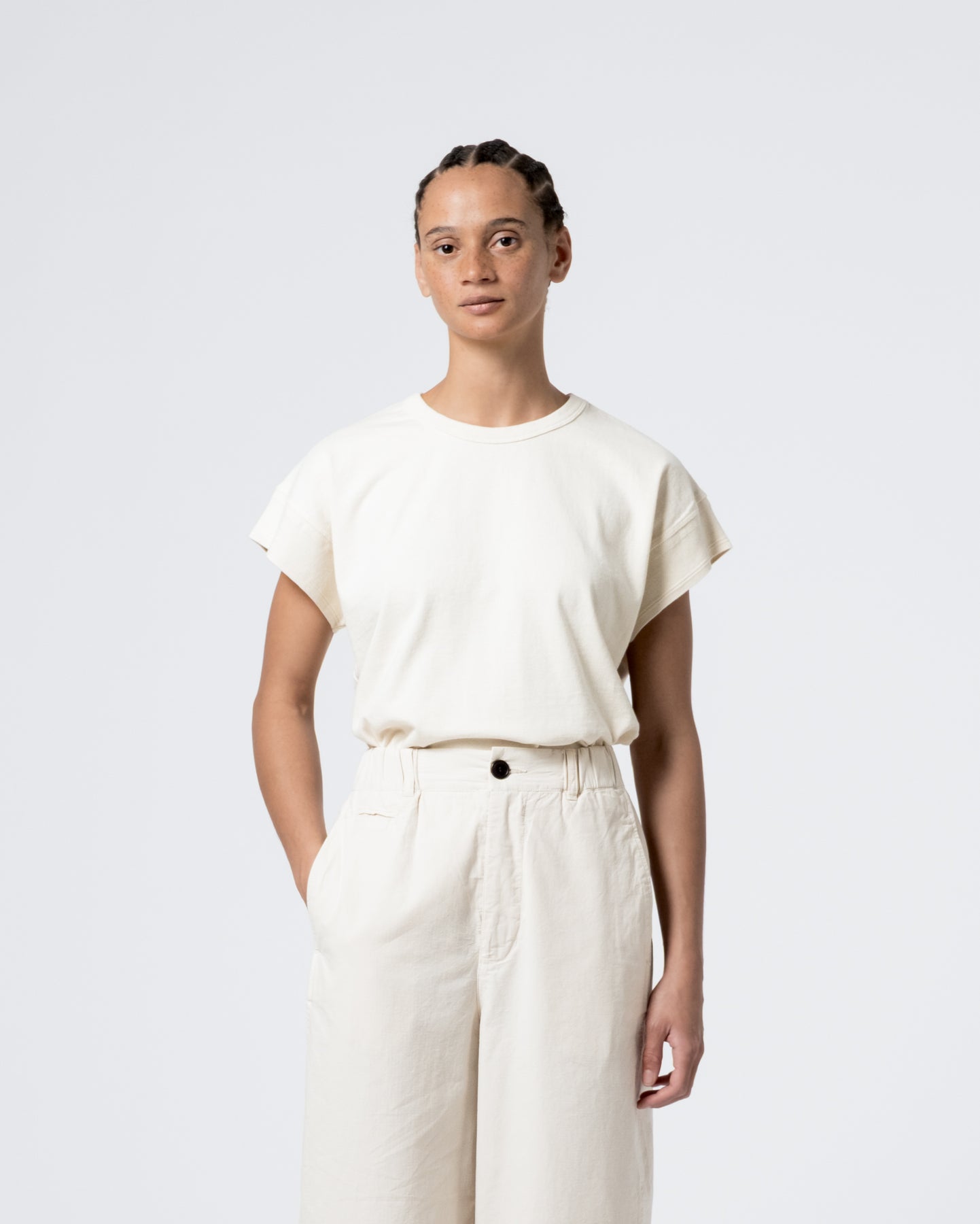 It's the return of our popular Muscle T. What's that? Well, it's a boxy t-shirt with shorter capped sleeves. An easy piece that fits well with shorts, denim, skirts or basically whatever you can think of. Cover your bases.