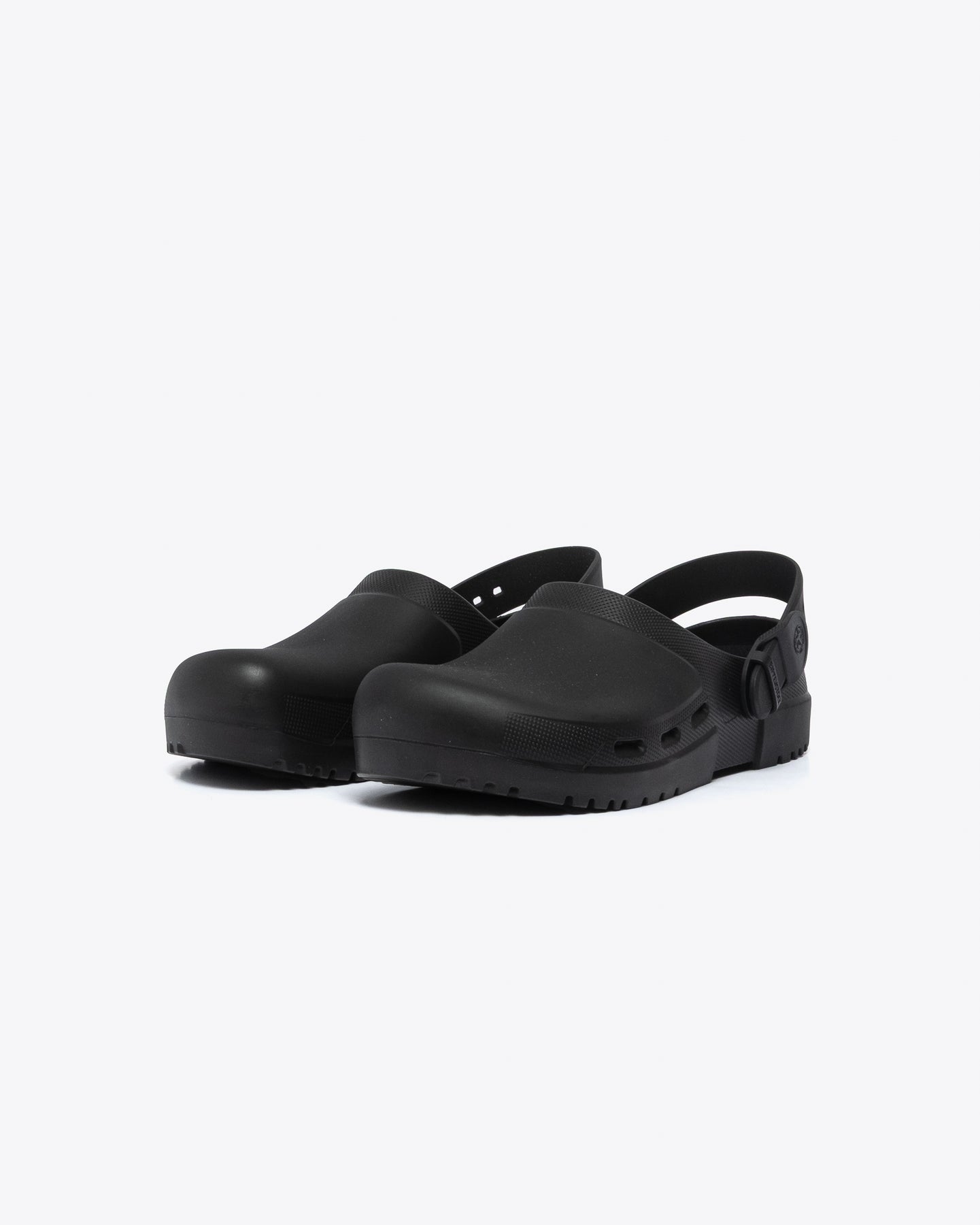 安全と快適性は両立可能です。Birki Air Antistaticモデルは、当社の定番で最も人気のあるクロッグの一つです。ハイネックのデザインが特徴的なこのポリウレタン製クロッグは、最適な履き心地と安全性を兼ね備え、優れたグリップ力を発揮します。前足部の大きな通気孔が、一日中快適な足元環境を保ちます。オリジナルのBIRKENSTOCK PUフットベッドは必要に応じて交換可能で、クロッグ全体と同様にEN ISO 20347:2022に準拠してテストされています。これらのクロッグは床を通して継続的に放電し、静電気の発生を防ぎます。調節可能なヒールストラップが、確実なグリップ力を強化します。PUソールは油や油脂に耐性があります。