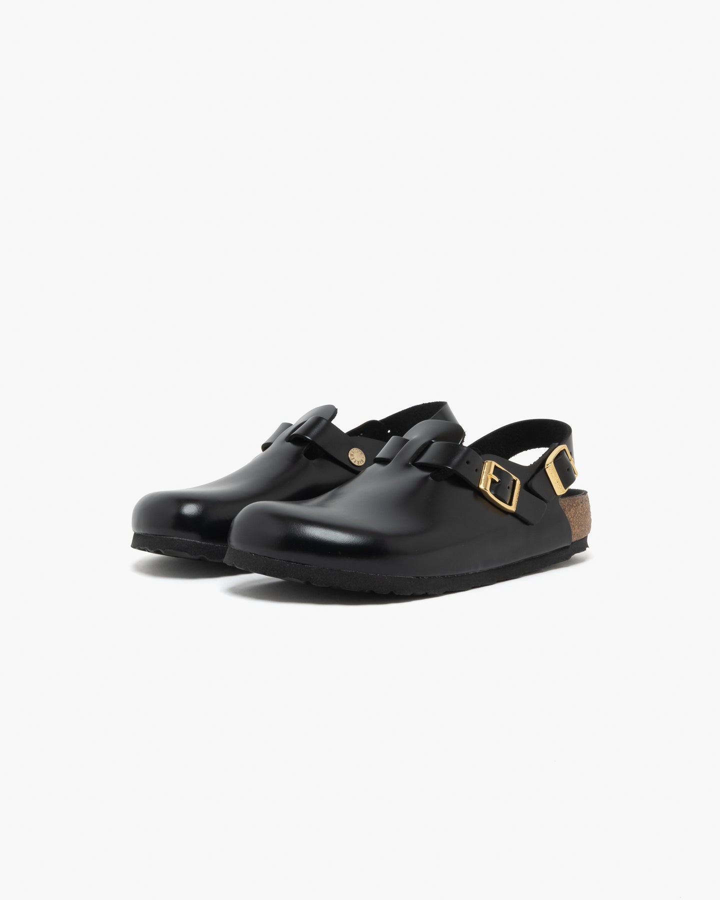 BIRKENSTOCK トキオ・クロッグは、定番のボストンをアレンジしたモデルです。ヒールストラップ付きで、一年中快適に履くことができます。セミ・エクスクイジットフットベッドライニングは、心地よく柔らかなピウマートレザーで全面覆われており、非常に高い履き心地を実現しています。アッパーは、非常に上質な高級アマルフィレザーを使用しています。