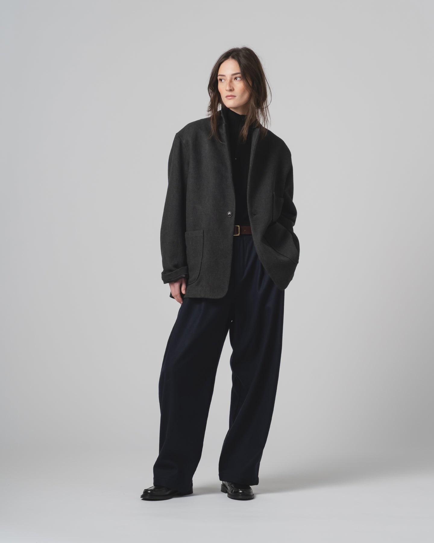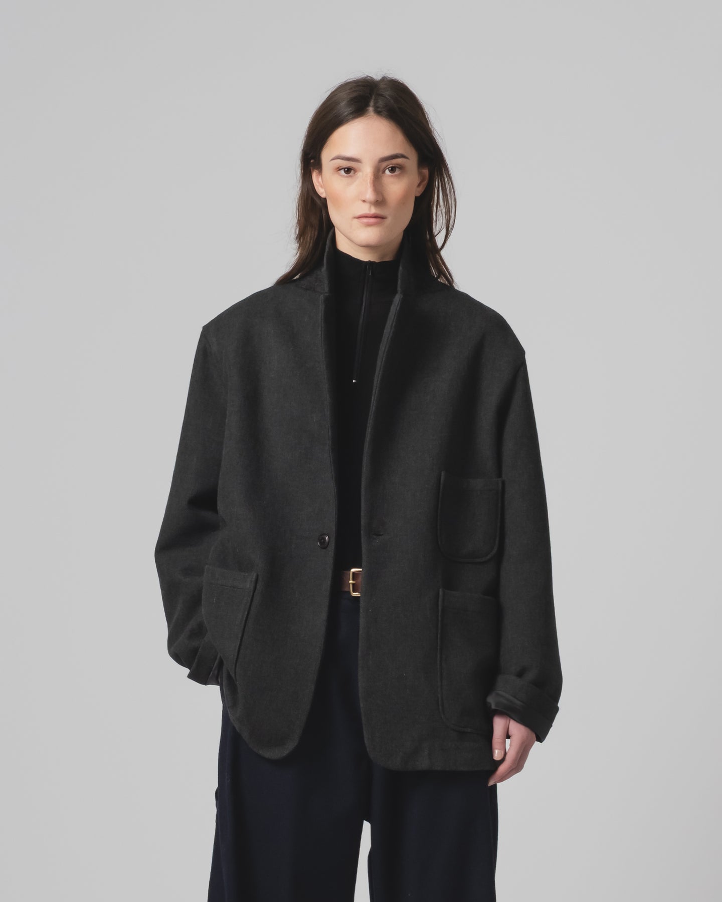 It's our double breasted blazer! We made sure to give this one our own spin, so it fits kind of oversized and boxy, plus feels a lot more casual than a regular blazer would. Made from a Wool blend for the colder days. Finished with big front pockets and a small chest pocket.