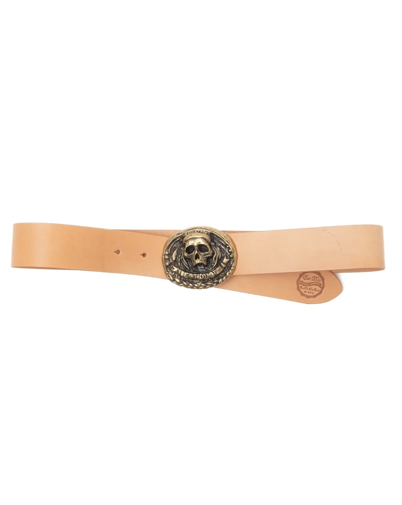 100%フルグレインの天然革を使用したレザーベルト。ニコラス・コールマンの作品をモチーフにした大型真鍮製バックル付き。