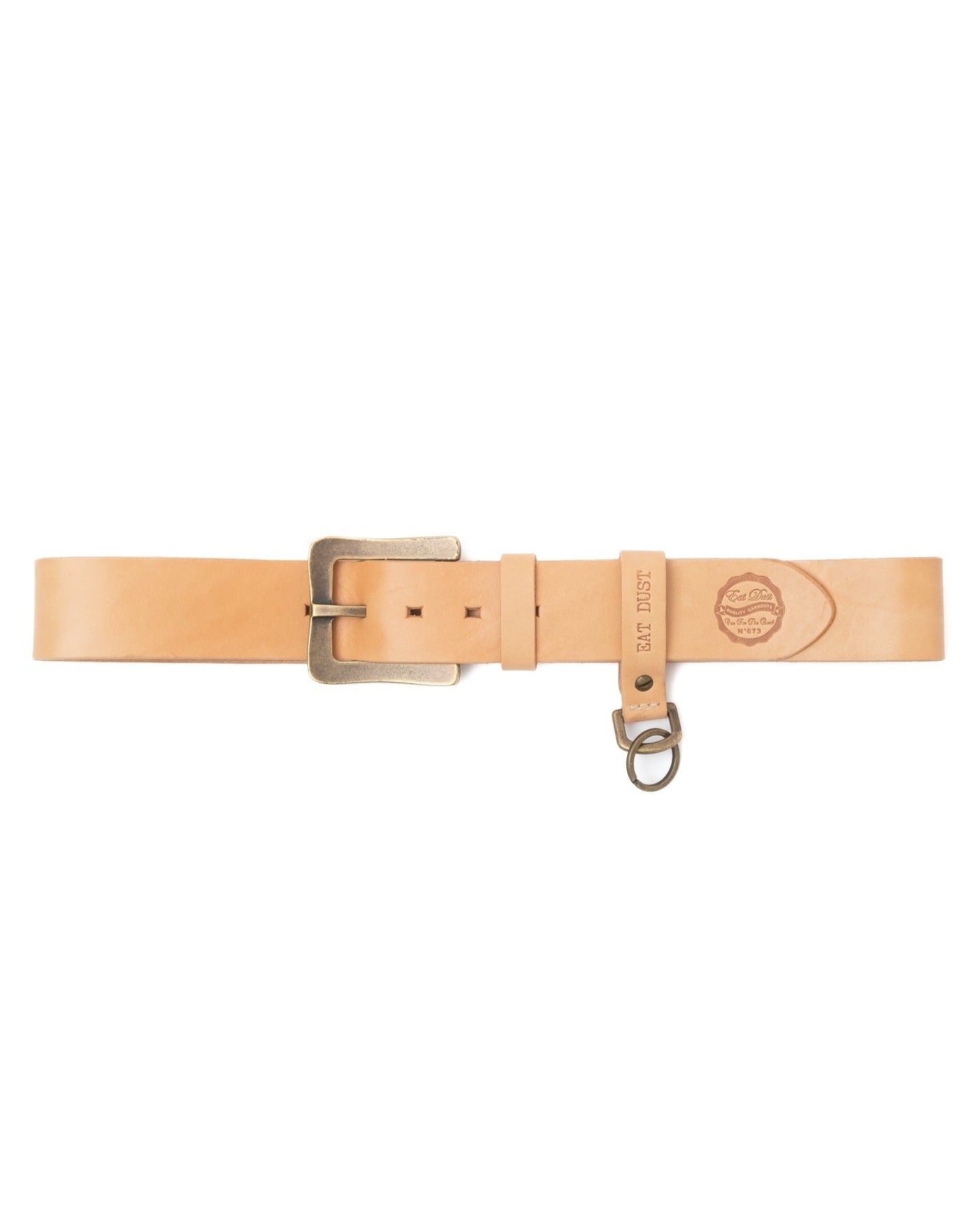 クラシックな天然ベルト。100%フルグレインの牛革を使用。Eat Dustのエンボスロゴ、追加のベルトループチェーン、アンティーク真鍮のバックル付き。