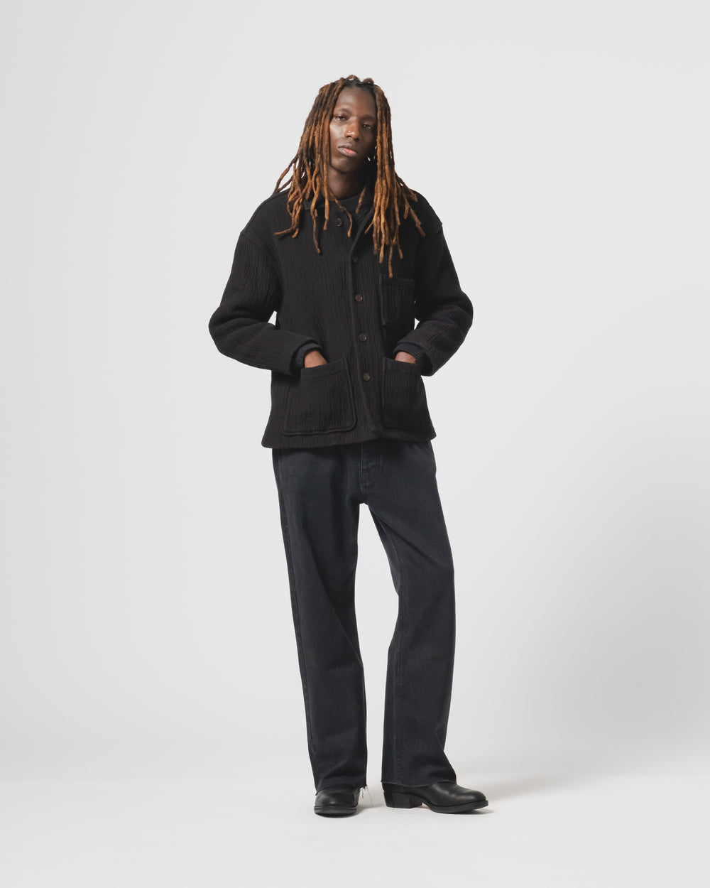 新作のカナシャツは、暖かさと質感に富んだジャカード織りの厚手のコットンで作られたオーバーシャツです。ゆったりとしたフィット感で、ヒップポケットとクラシックなボタン留めが特徴です。丈夫な生地とシャープなシルエットで、この冬の寒い日に最適なレイヤリングアイテムです。