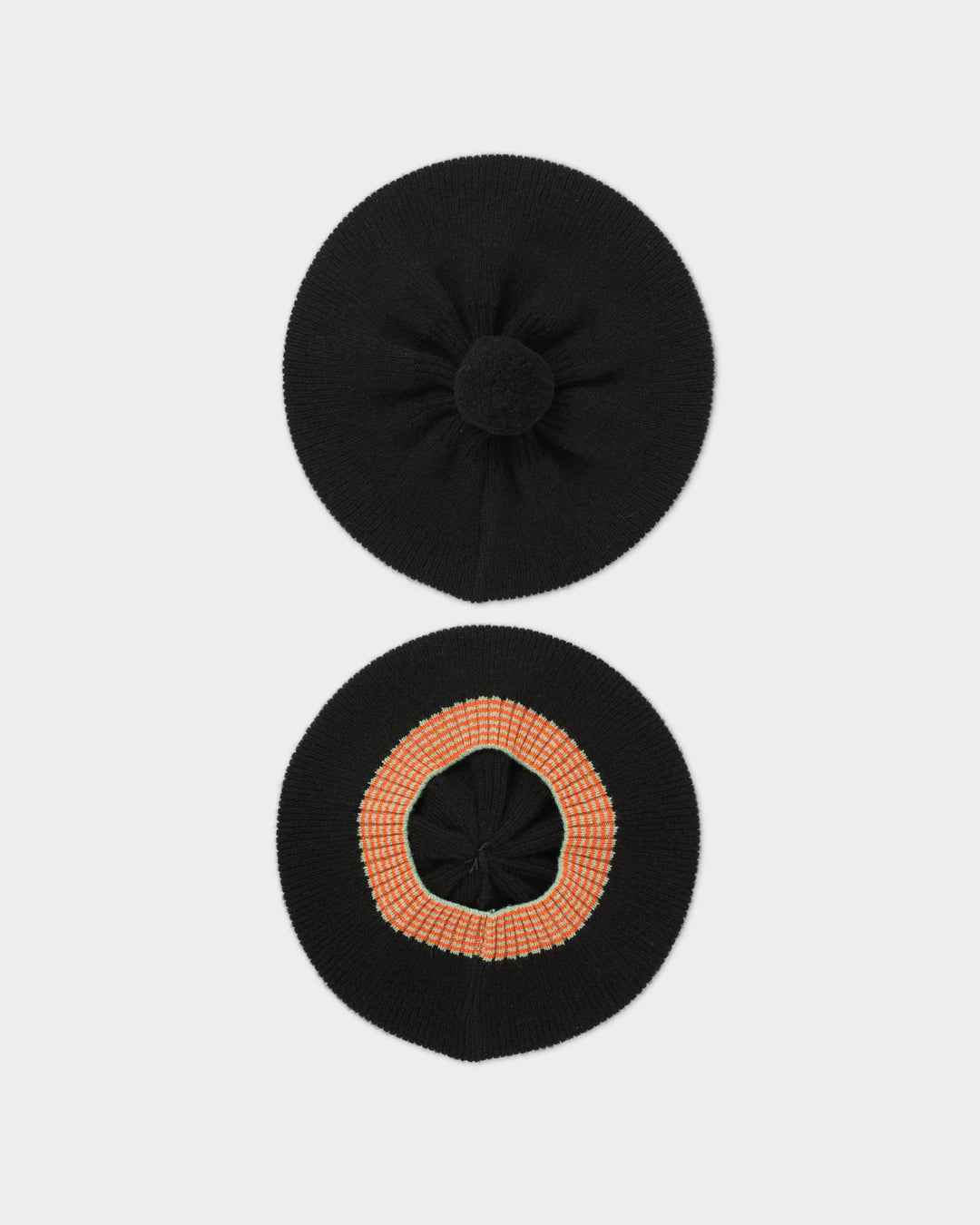 JG ストライプ ポンポン帽 ブラック/オートミール