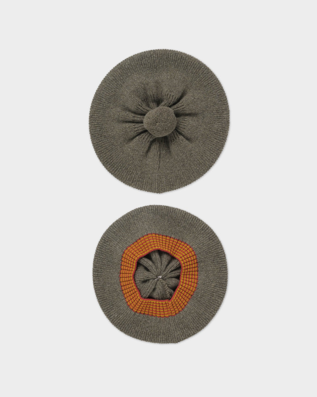 JG ブラッシュドプレーンコントラストポンポンハット モスグリーン