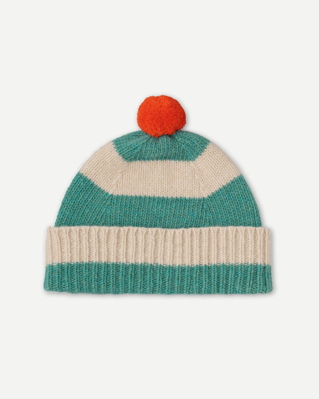 JG ストライプ ポンポン帽 ジェイド/オートミール