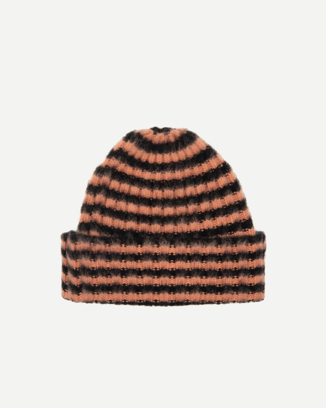 JG ストライプ ポンポン帽 オレンジ グロス/オートミール