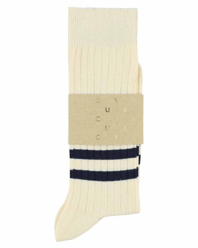 エスキエール ストライプ ソックス エクリュ/ブルー