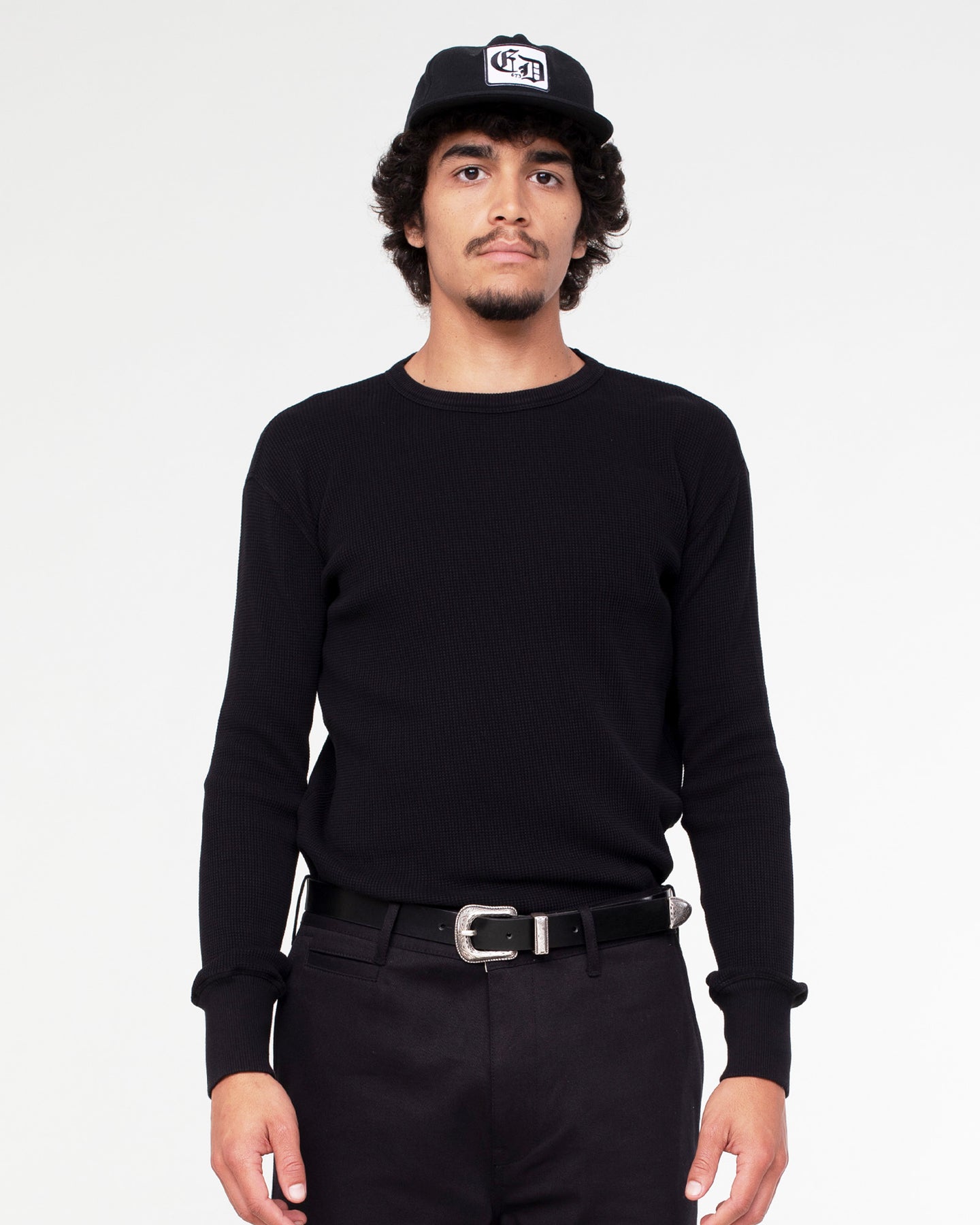 - サーモワッフルTシャツ ジャージ コットン ブラック