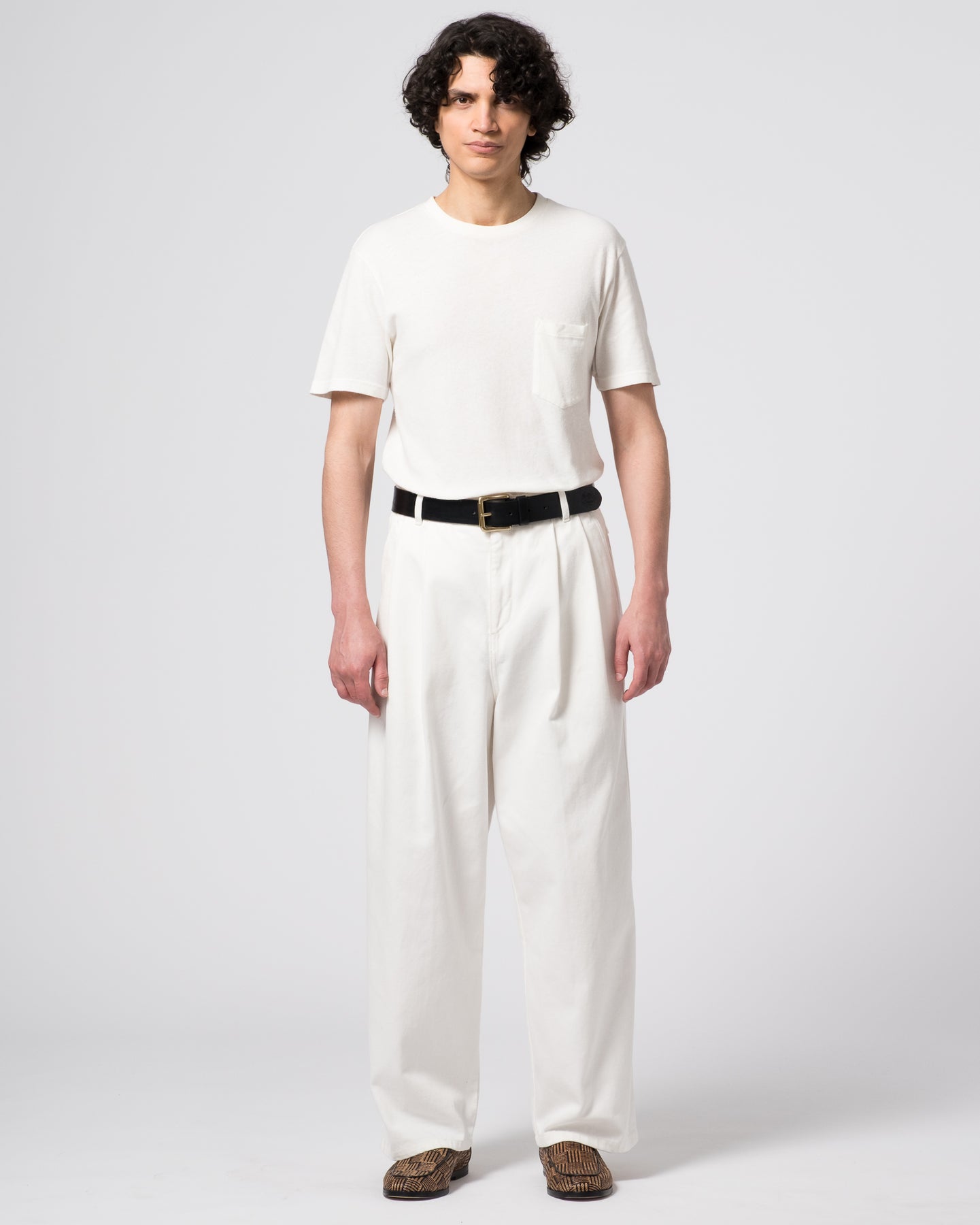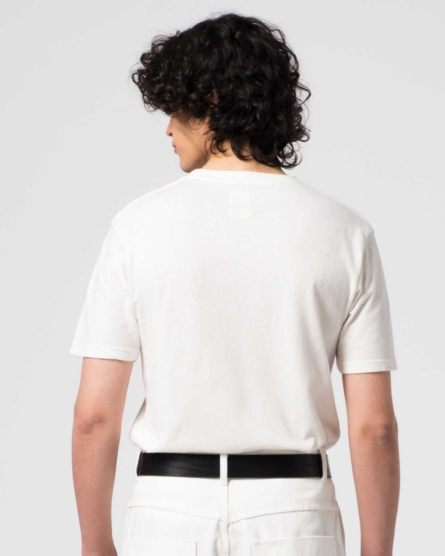 ポルトガル産のコットンとヘンプをブレンドしたジャージー素材を使用した、胸ポケット付きのクラシックなクルーネックTシャツ。シンプルで快適な着心地を。