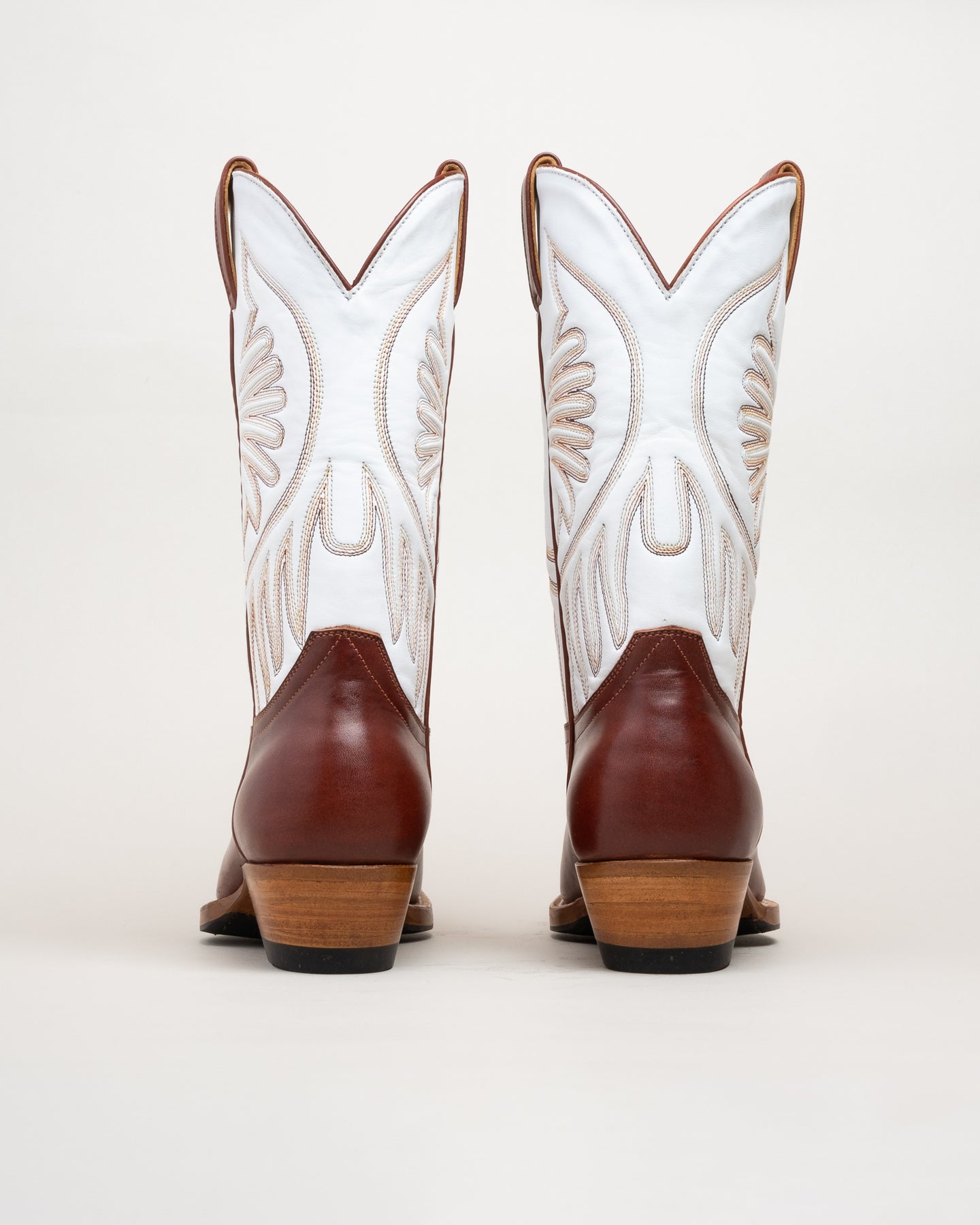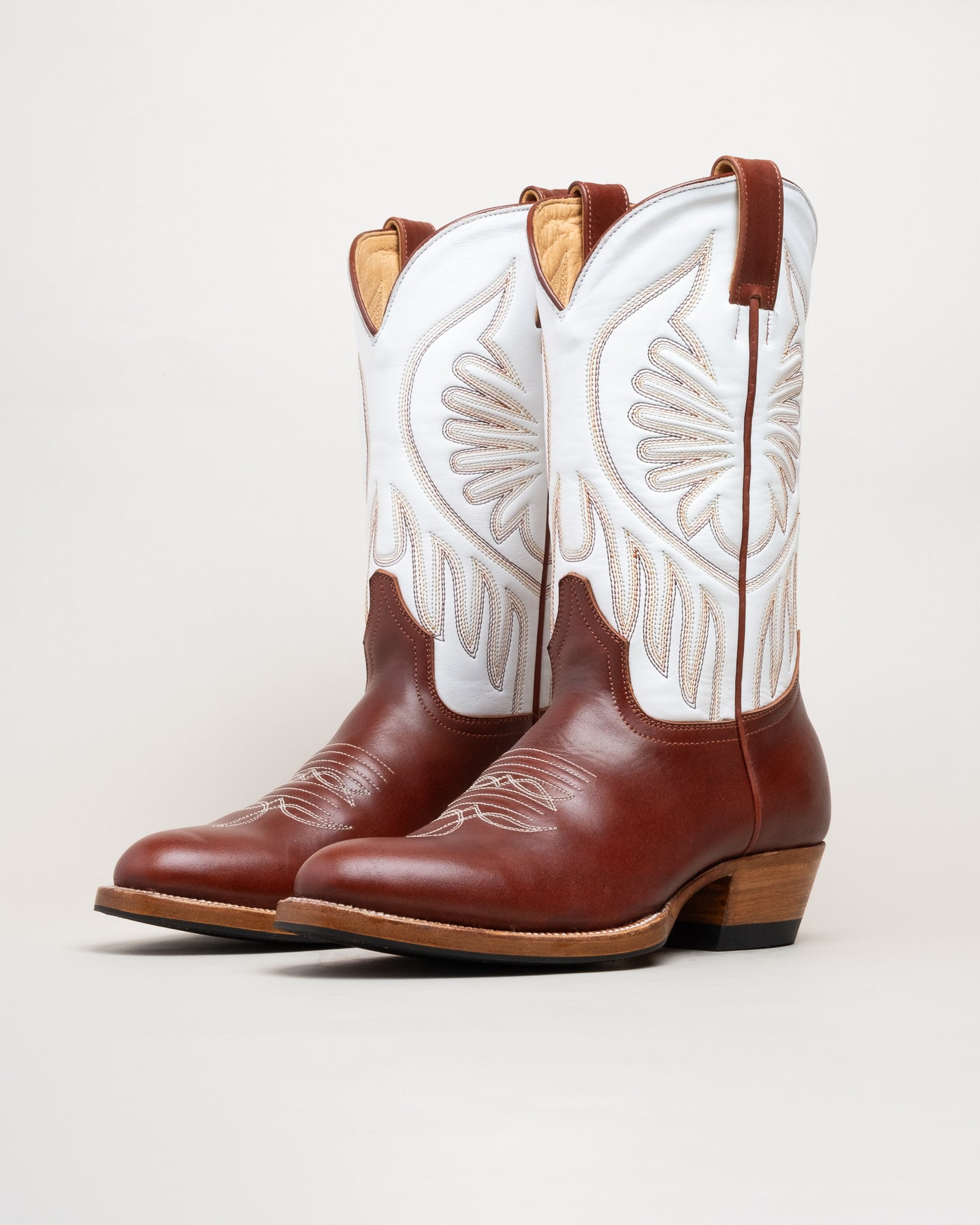 新型「Durango」ブーツの制作に込められたインスピレーションは、カウボーイブーツの職人技を極めることでした。筒部分には5列の凝ったステッチが施され、プント・マルカド製法で手作りされており、彫刻が施された溝のあるフルレザーインソールが付属しています。また、真鍮の釘と木製のペグで固定された120度ミニウェルト、フルスタックレザーヒール、レザーヒールカウンターも採用されています。これらのブーツはまさに芸術作品であり、仕事用にもおしゃれ用にも最適です。