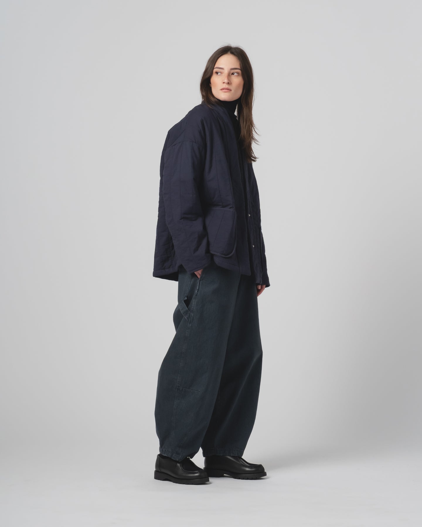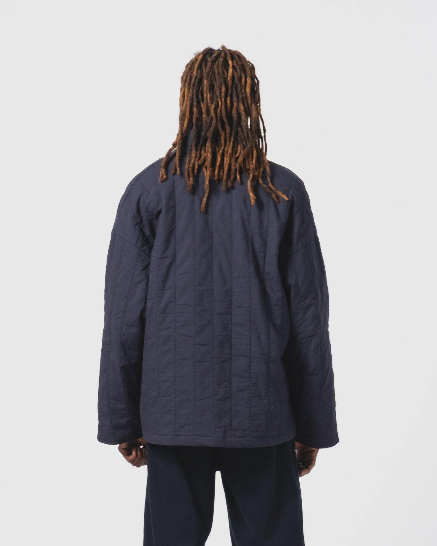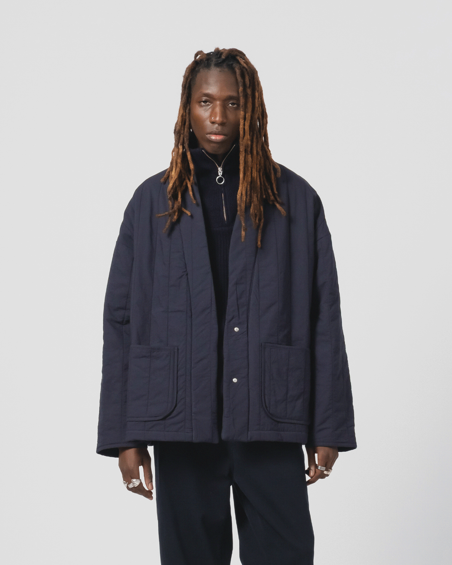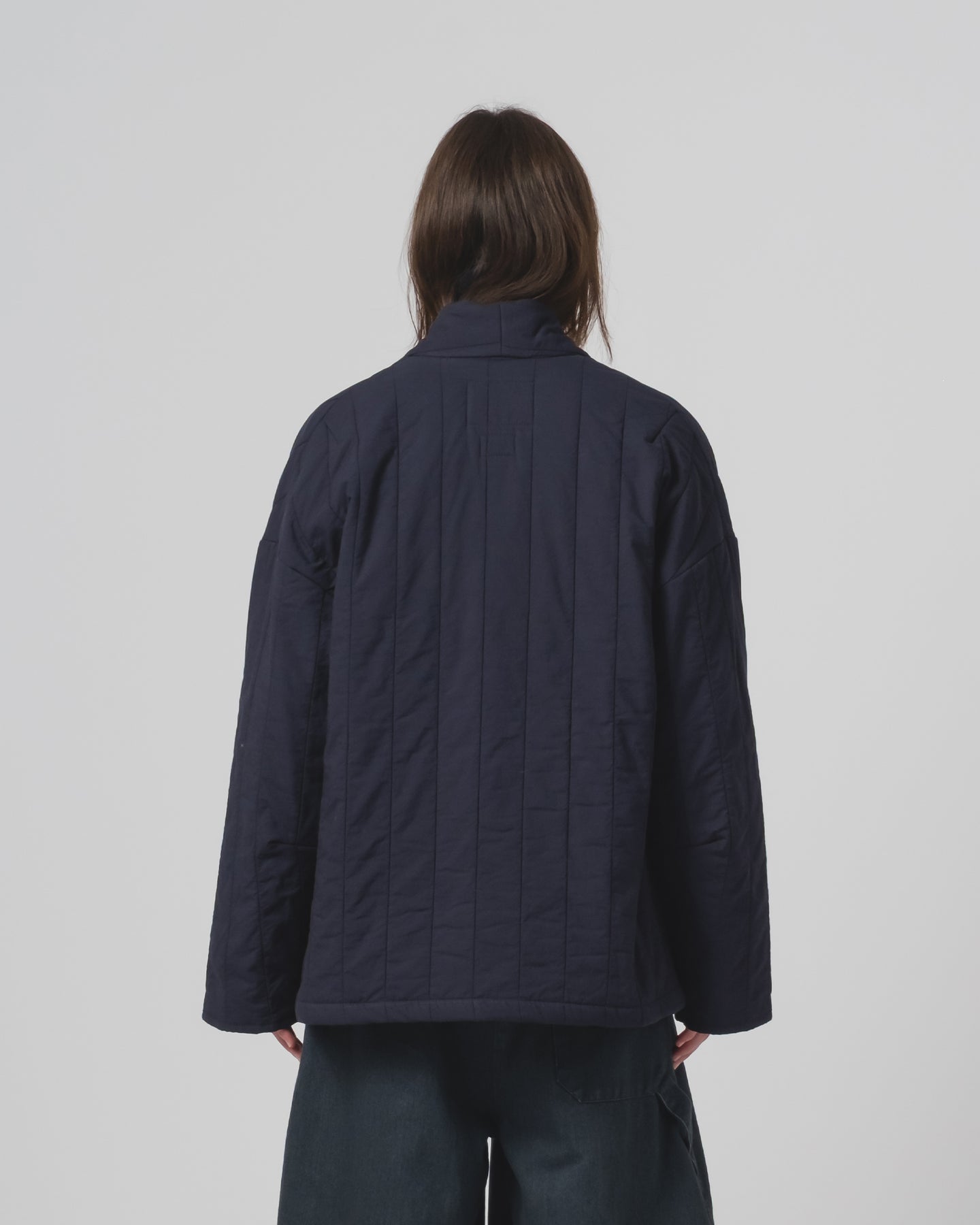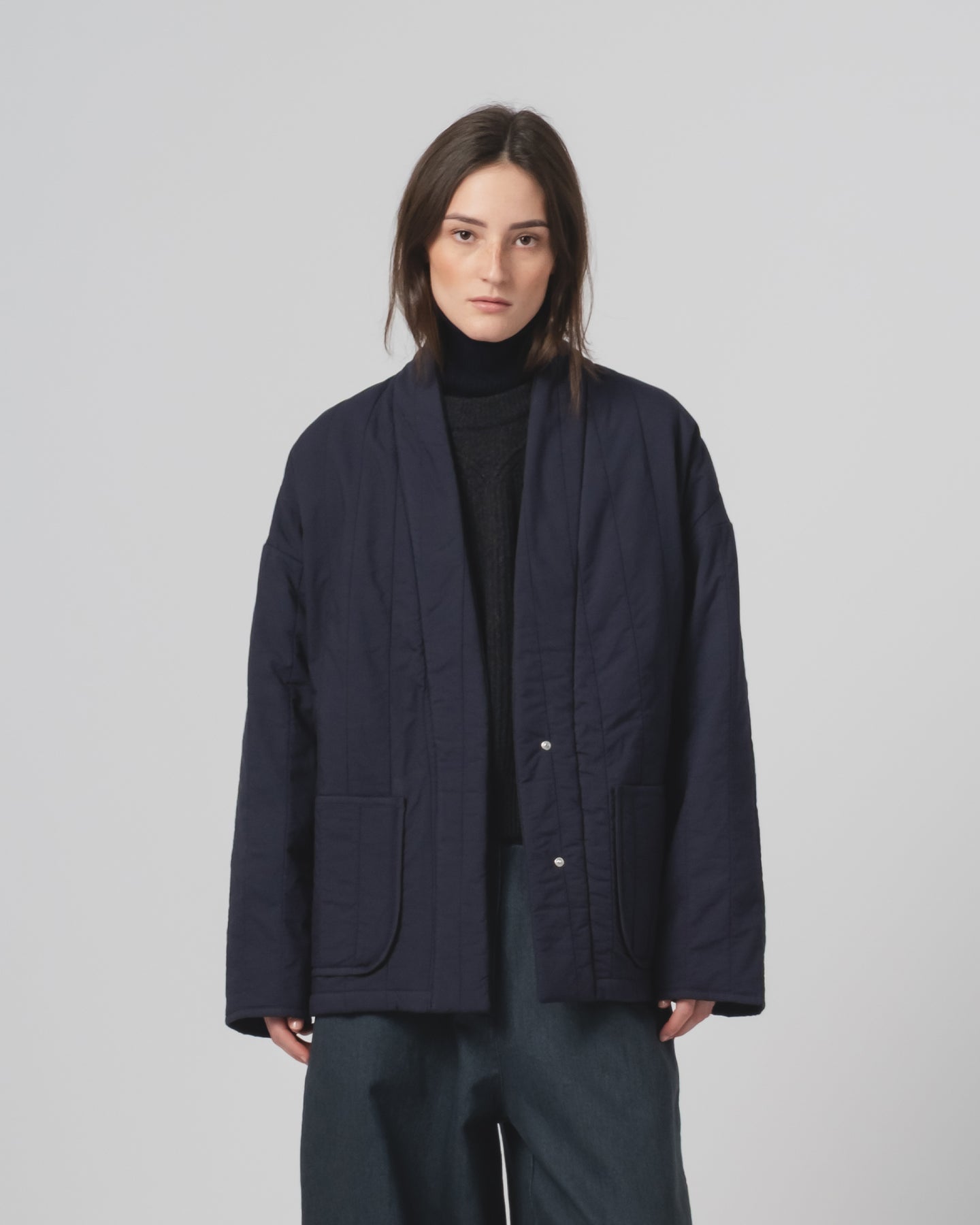 着物を取って、丈を長くしてジャケットにしました。これが私たちの江戸ジャケットです。暖かさを増すために綿を挟んだ生地で作られており、必要な時に肩に羽織れる便利な一枚として最適です。
