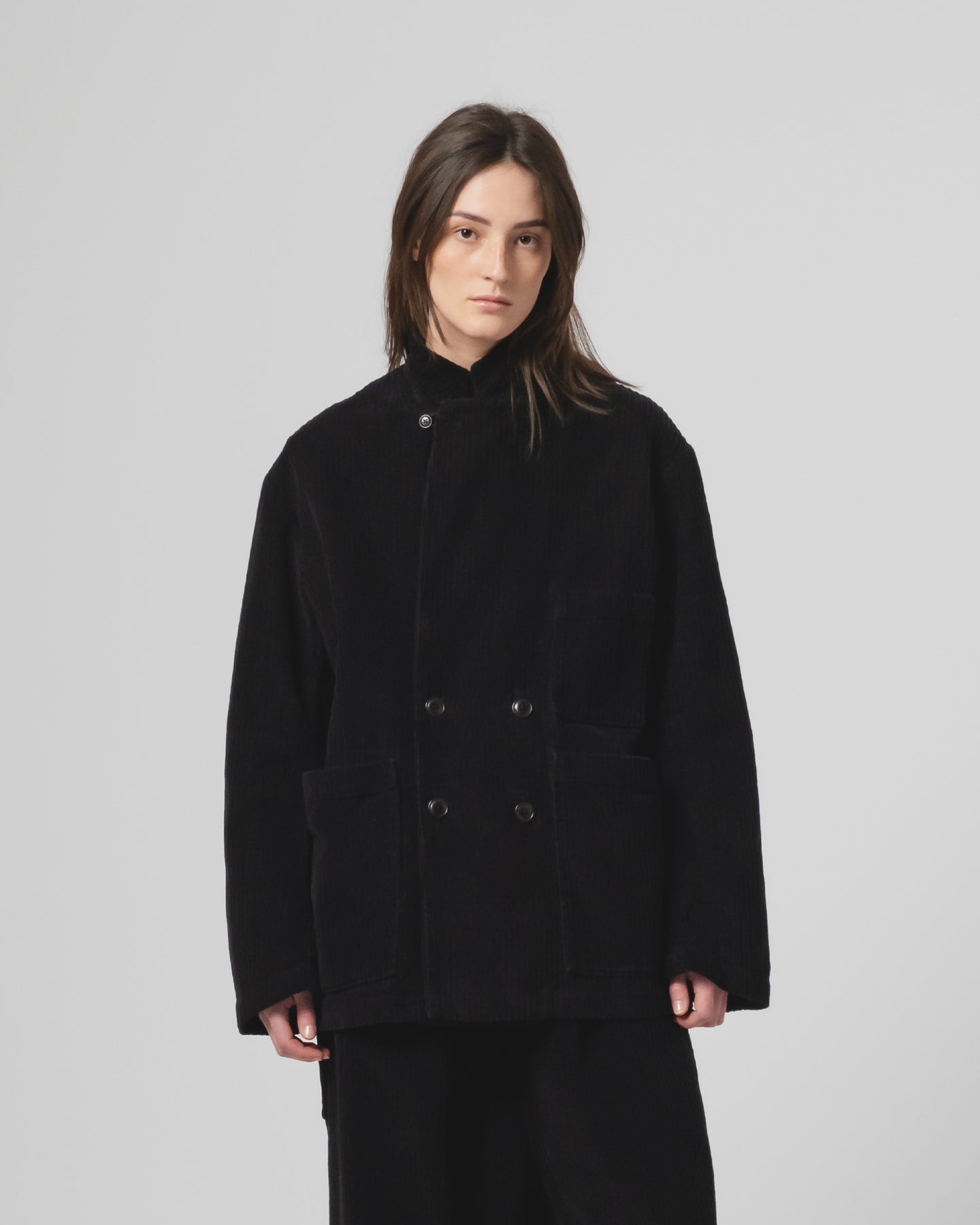 定番のダブルブレストブレザーを、リラックスした雰囲気で再解釈した、新しいアイテムをご紹介します。マキシブレザーは、ゆったりとしたオーバーサイズのフィット感と、ソフトなショルダーで、よりカジュアルで無造作なルックスを実現。シーズン限定のドリームコードコットンを使用し、留められる襟、ボタン留め、そしてオーバーサイズのフロントポケットが特徴です。エレガントでありながら、堅苦しくないデザインです。