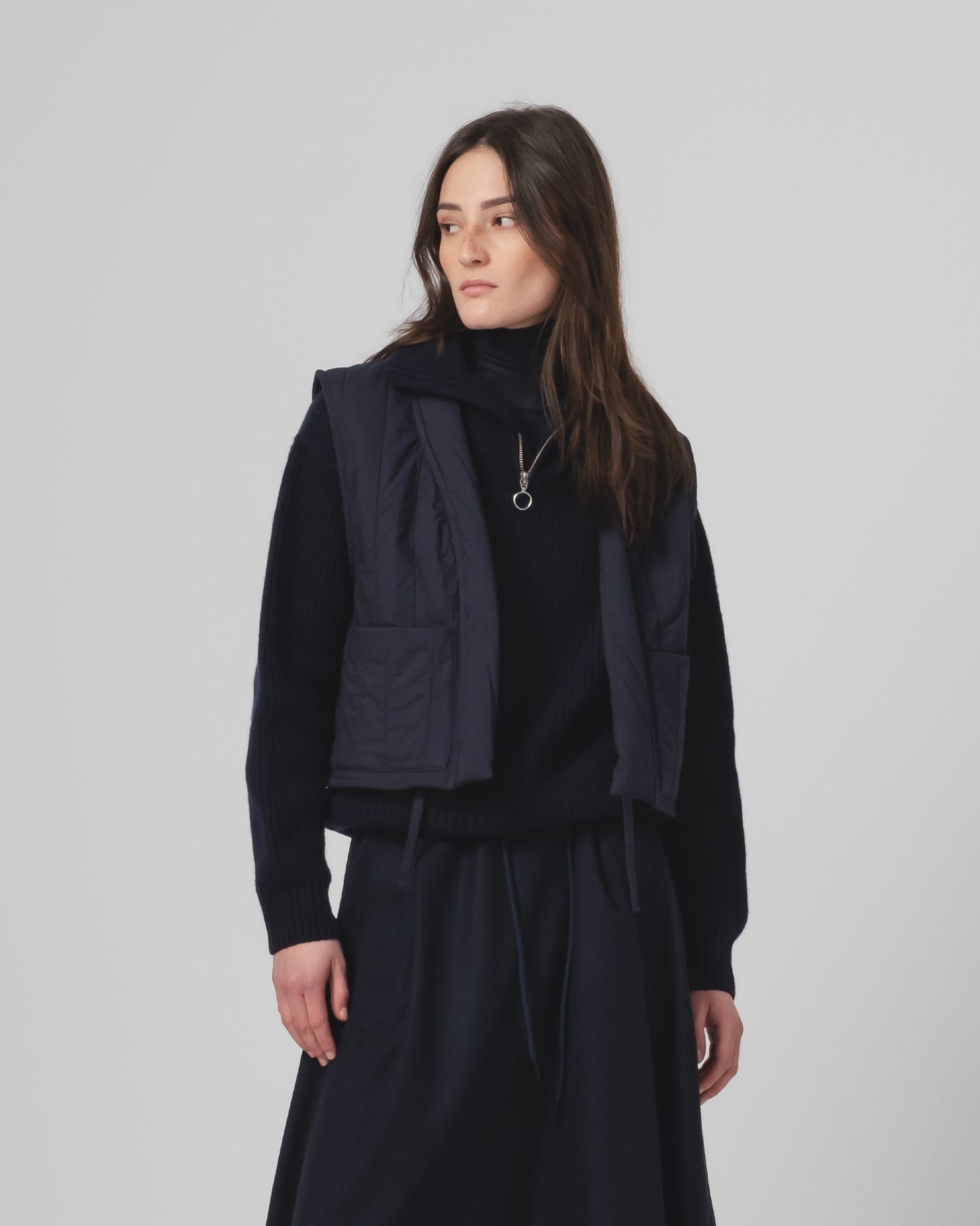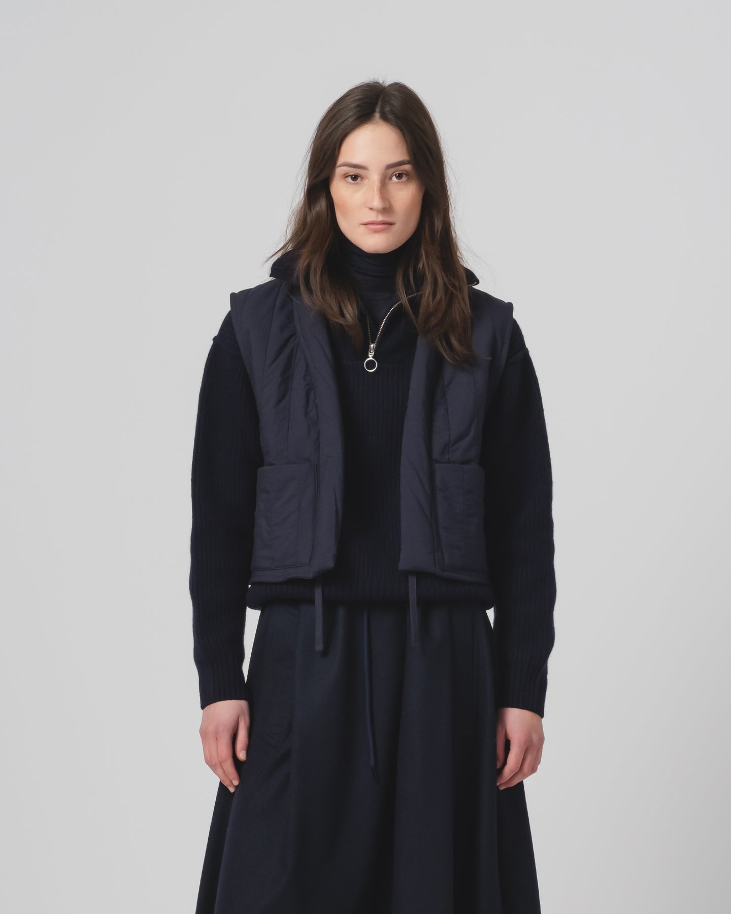 この小さなノースリーブベストは、あなたの装いを一変させるでしょう。着やすく、スタイリングも簡単で、きっと目を引くこと間違いなし。柔らかくキルティングされたコットン製で、フロントポケットが2つ付いており、内側の2本のコードで留めることができます。