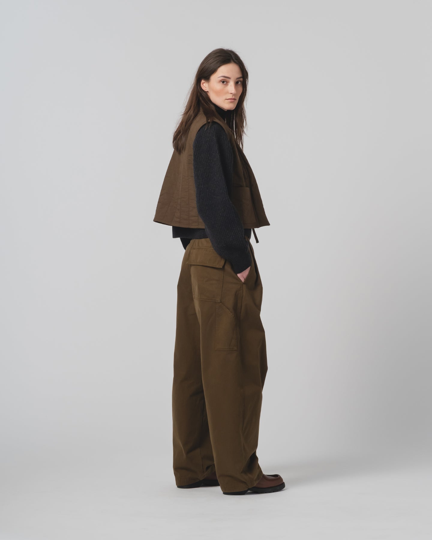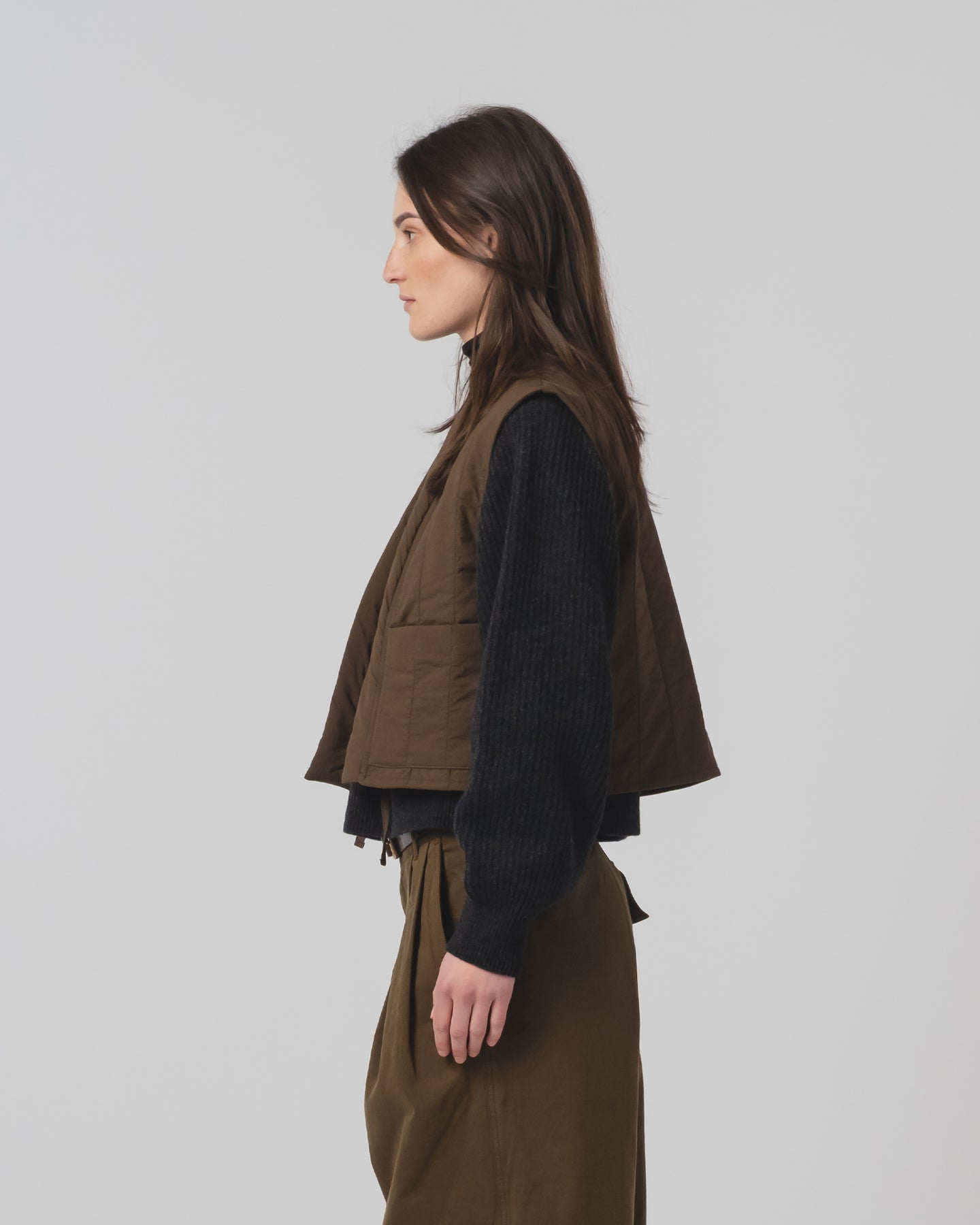 この小さなノースリーブベストは、あなたの装いを一変させるでしょう。着やすく、スタイリングも簡単で、きっと目を引くこと間違いなし。柔らかくキルティングされたコットン製で、フロントポケットが2つ付いており、内側の2本のコードで留めることができます。