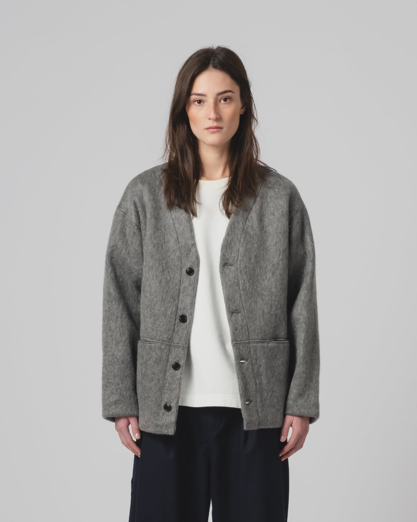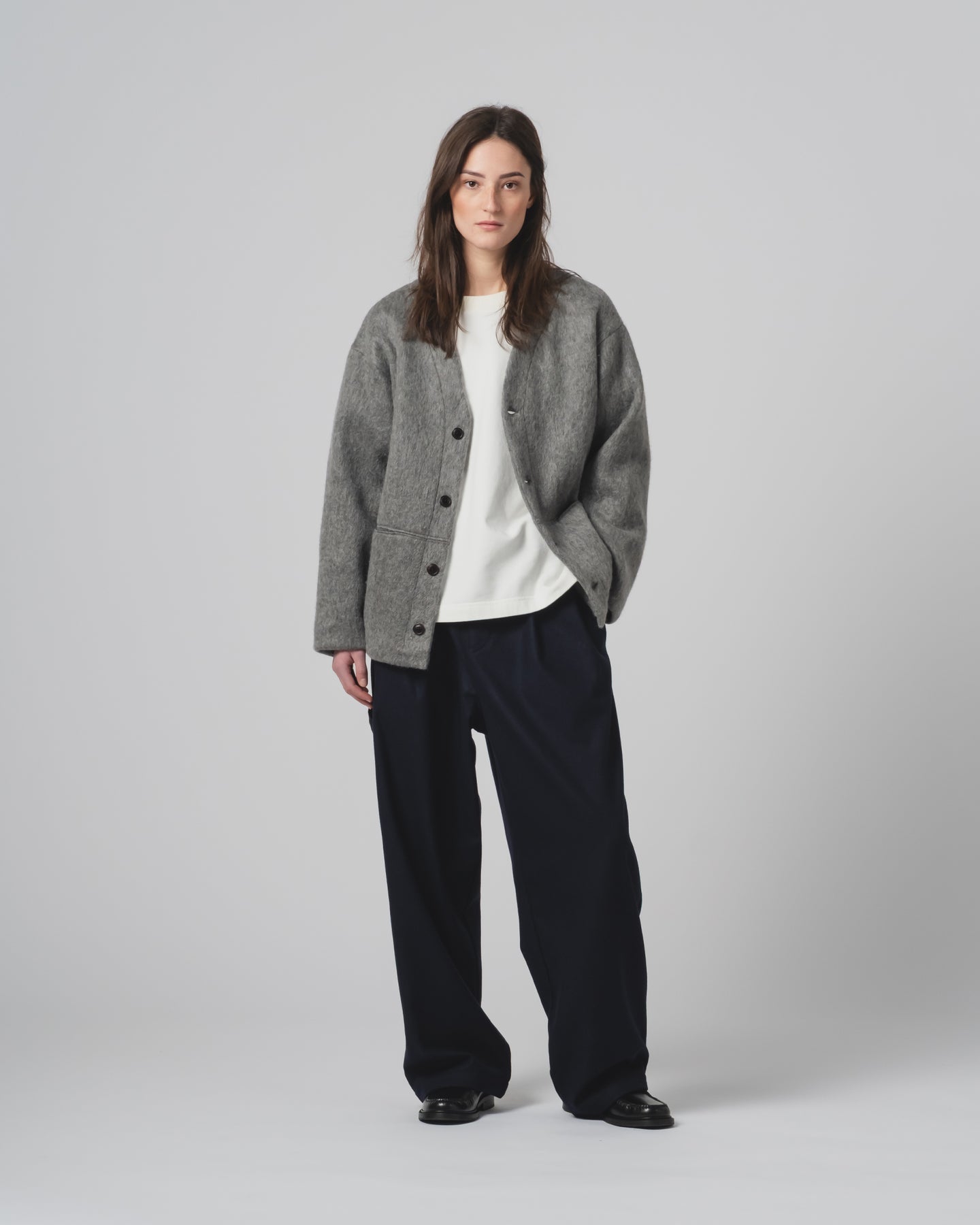ベースボールカーディガンから着想を得たベーシックカーディガンは、ユニセックスで着用できる新しいスタイルです。やや短く、ボックスシルエットになっているため、あなたと愛する人たちでシェアできる理想的な一枚です。