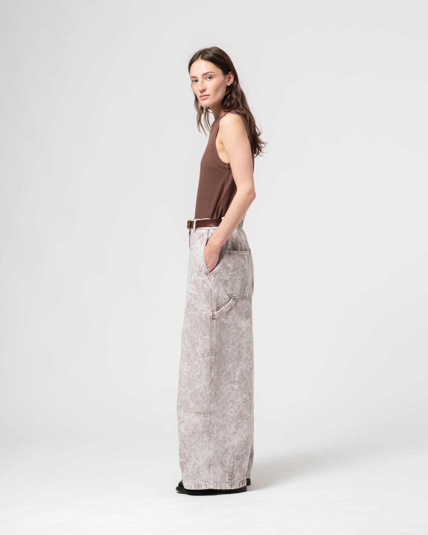 ノースリーブのクルーネックタンクトップは、デニム、ショートパンツ、スカートなど、どんなアイテムとも相性抜群。コットンヘンプ混紡素材を使用。