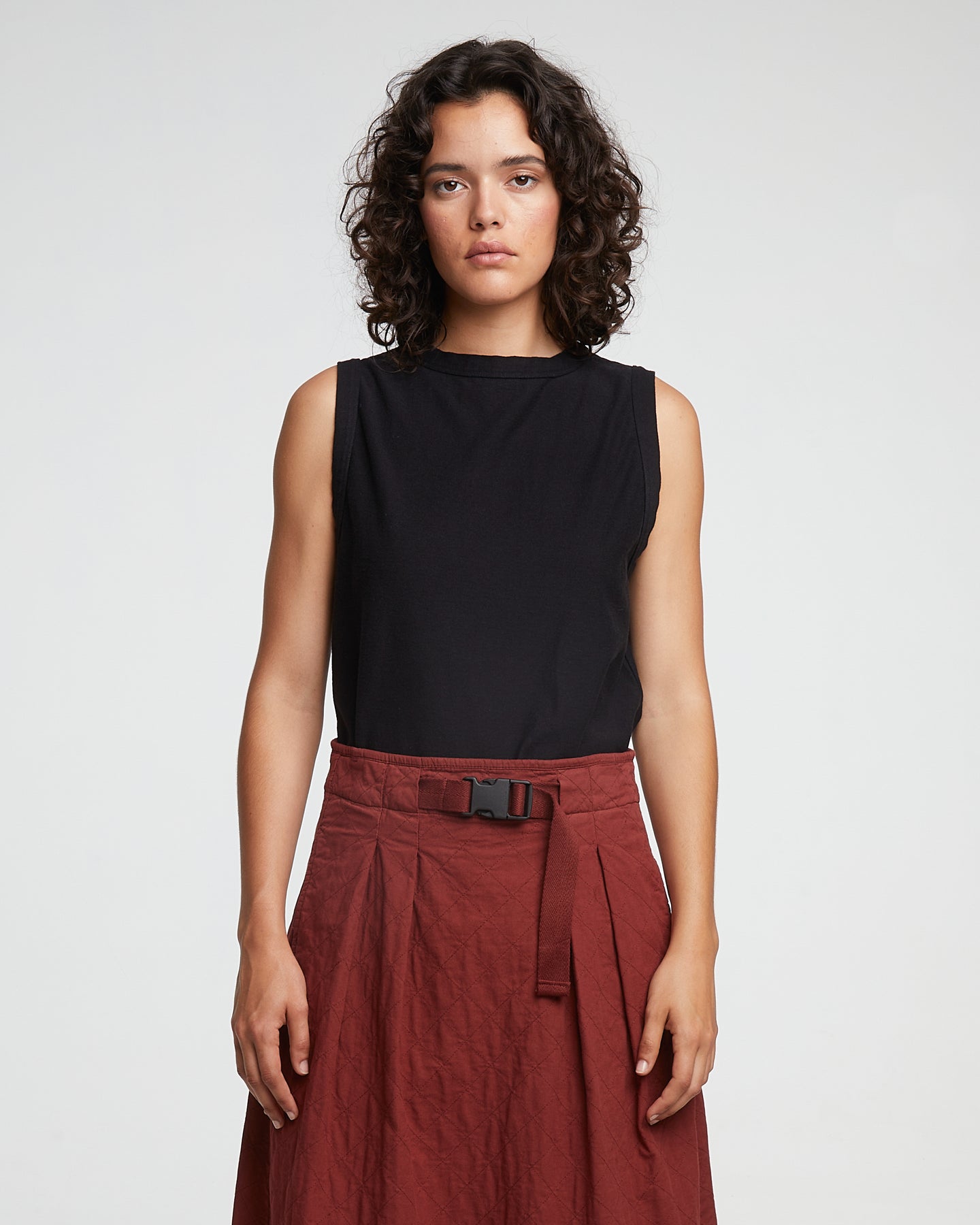 このノースリーブのクルーネックタンクトップは、デニム、ショートパンツ、スカートなど、どんなアイテムとも合わせやすく、いつでも重宝します。ポルトガル産のオーガニックオープンエンドコットンを使用。