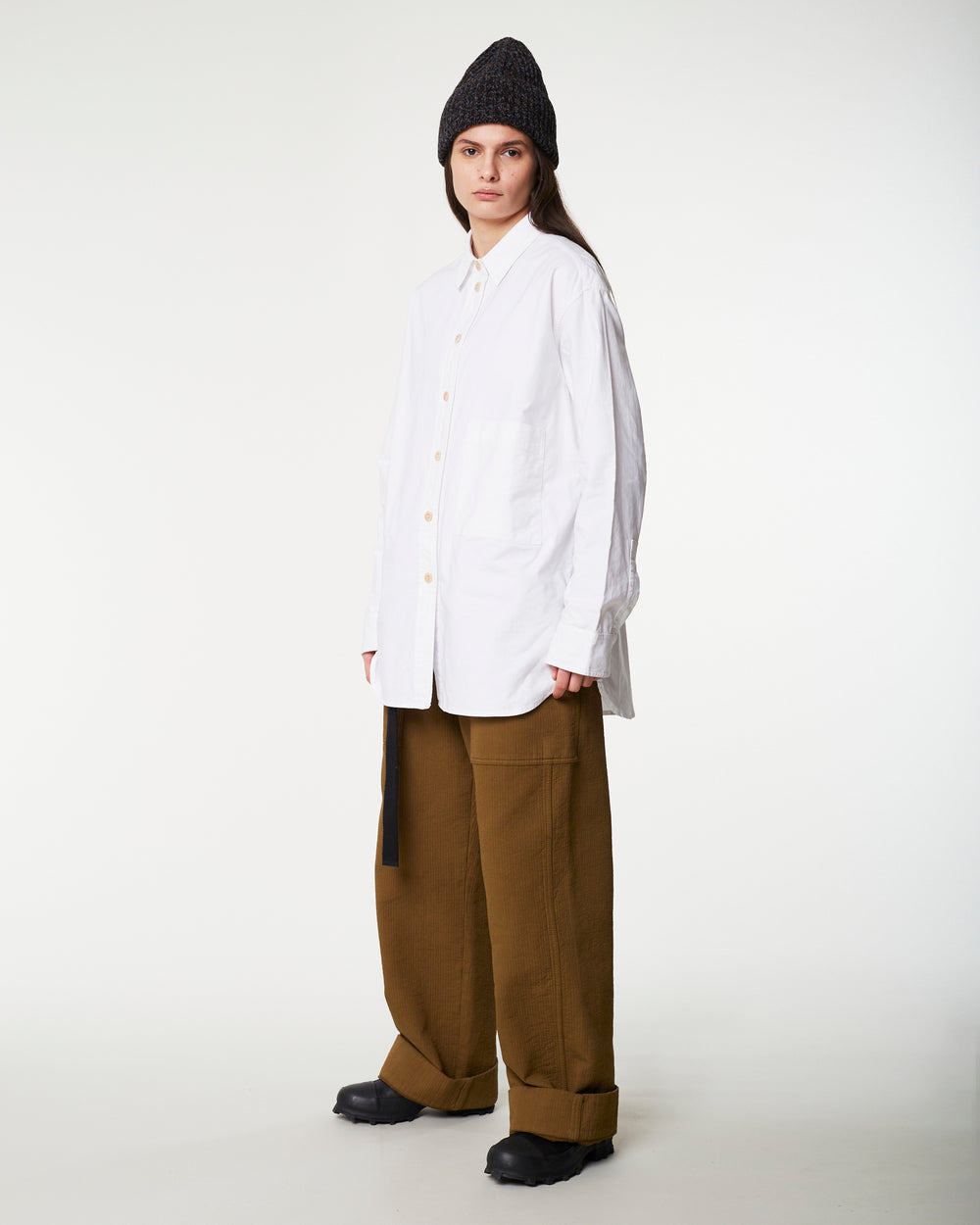 Take that classic 80s dad shirt and make it your own. This one's oversized, with a regular cut, classic curved hems and a big single breast pocket positioned a little lower on the chest. Made from a white oxford cotton, finished with Corozo cat-eye buttons.
