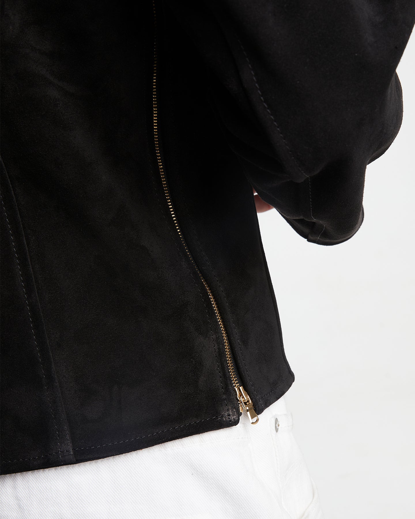 The Outlaw shirt is crafted from a smooth black suede Leather material. This Pull Over Shirt has a slim fit and is completed with two convenient side zippers for effortless wear and removal.
