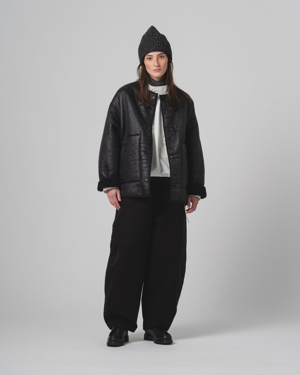 2025年冬の新作であるソーラー・ジャケットは、当社のアウターウェアコレクションに新鮮なシルエットをもたらします。ロングシルエット、襟なしデザイン、そして完全なリバーシブル仕様で、ゆったりとしたオーバーサイズとリラックスしたドロップショルダーで、1着で2つのスタイルを楽しめます。ボタン留めがシンプルさを保ち、すっきりとしたデザインが、かさばることなく暖かさをプラスします。