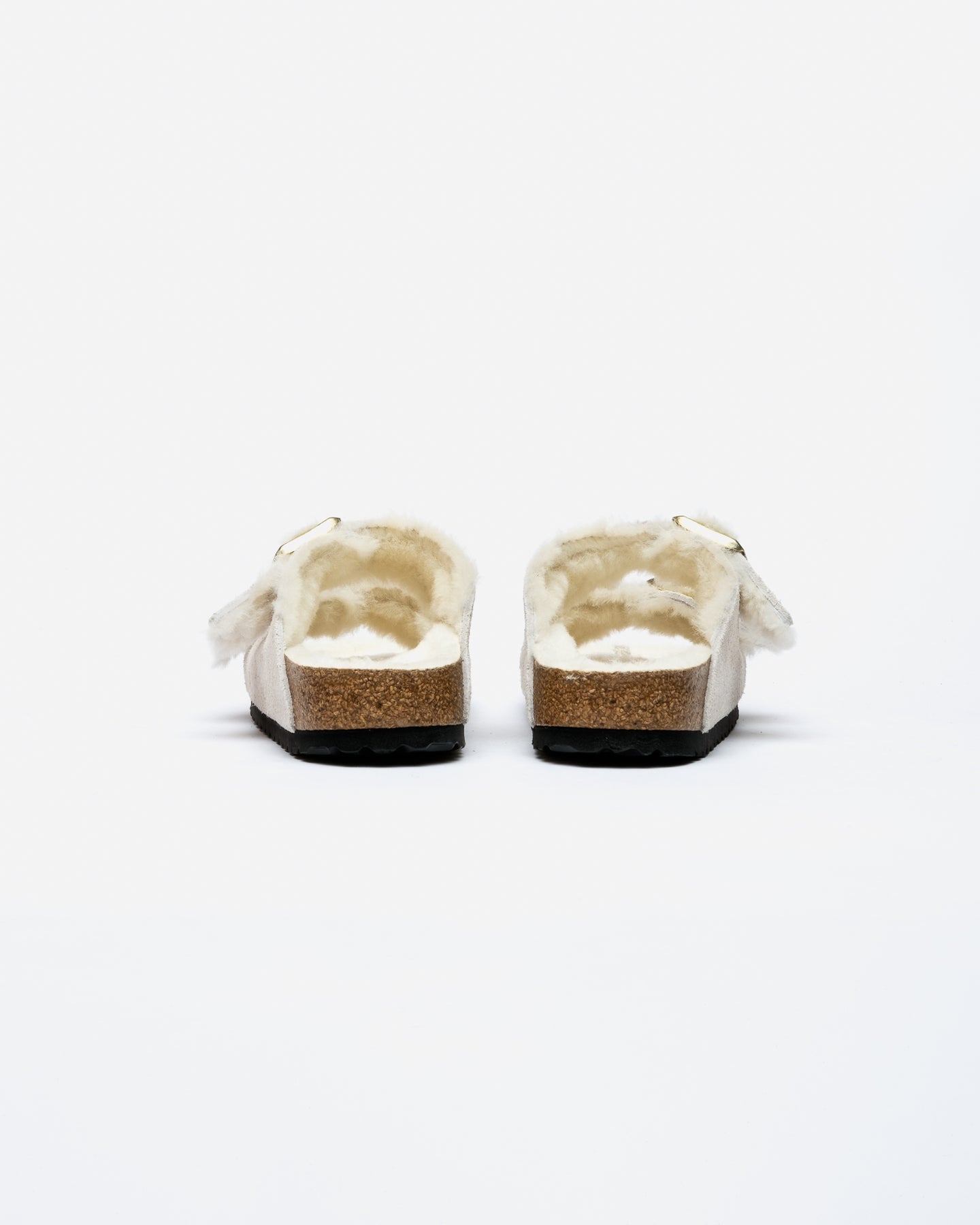 The bolder, the better! This is a wonderfully comfy version of the classic BIRKENSTOCK Arizona model with shearling footbed lining and straps lined with lambskin. The sandal can be individually adjusted to the wearer’s feet using the two metal pin buckles in a vintage look. This ensures an excellent fit and firm grip. The comfort level is boosted by the flexible EVA outsole with signature BIRKENSTOCK bone profile, which enables a healthy rolling motion.