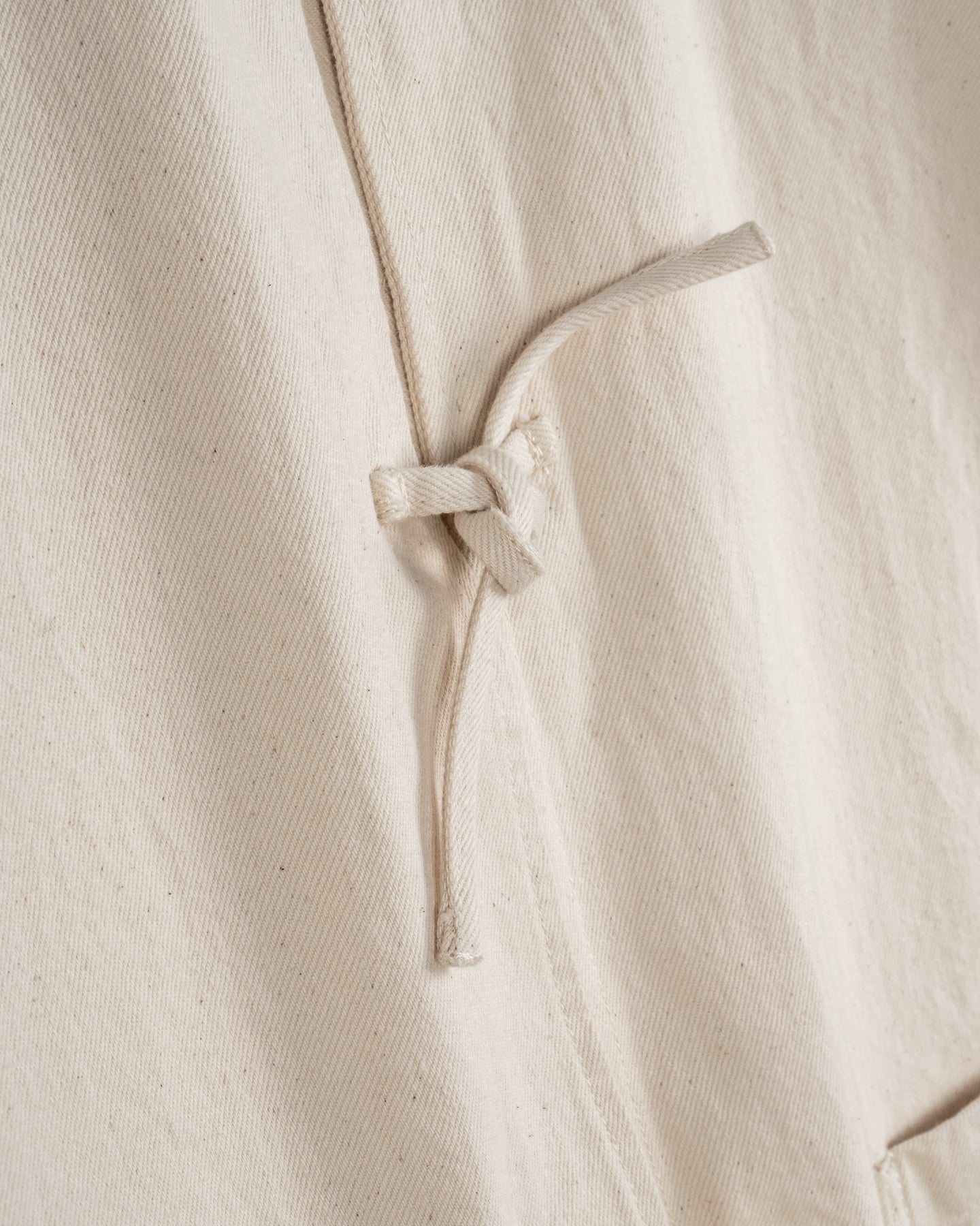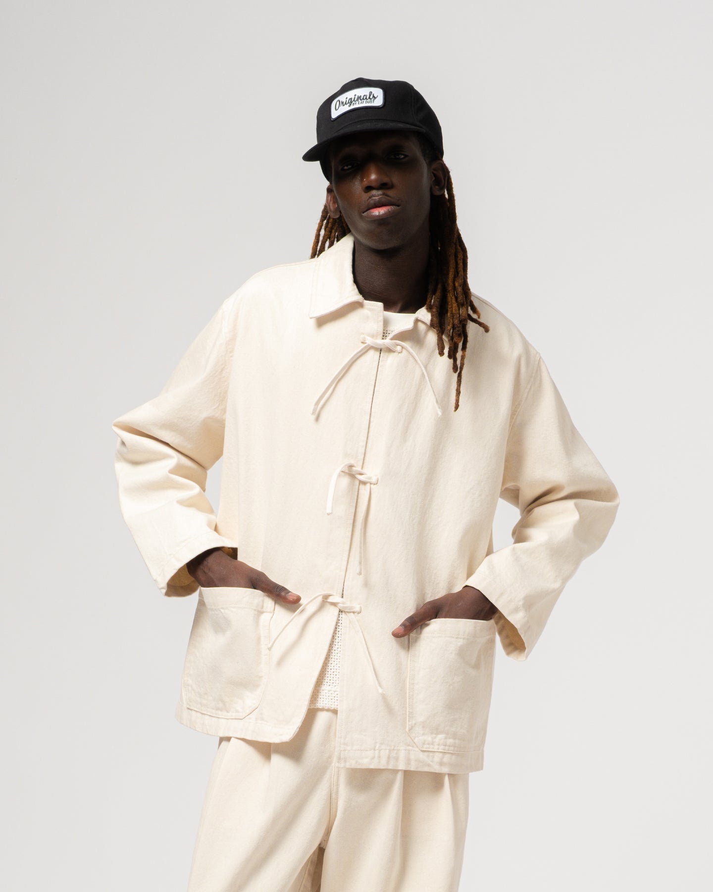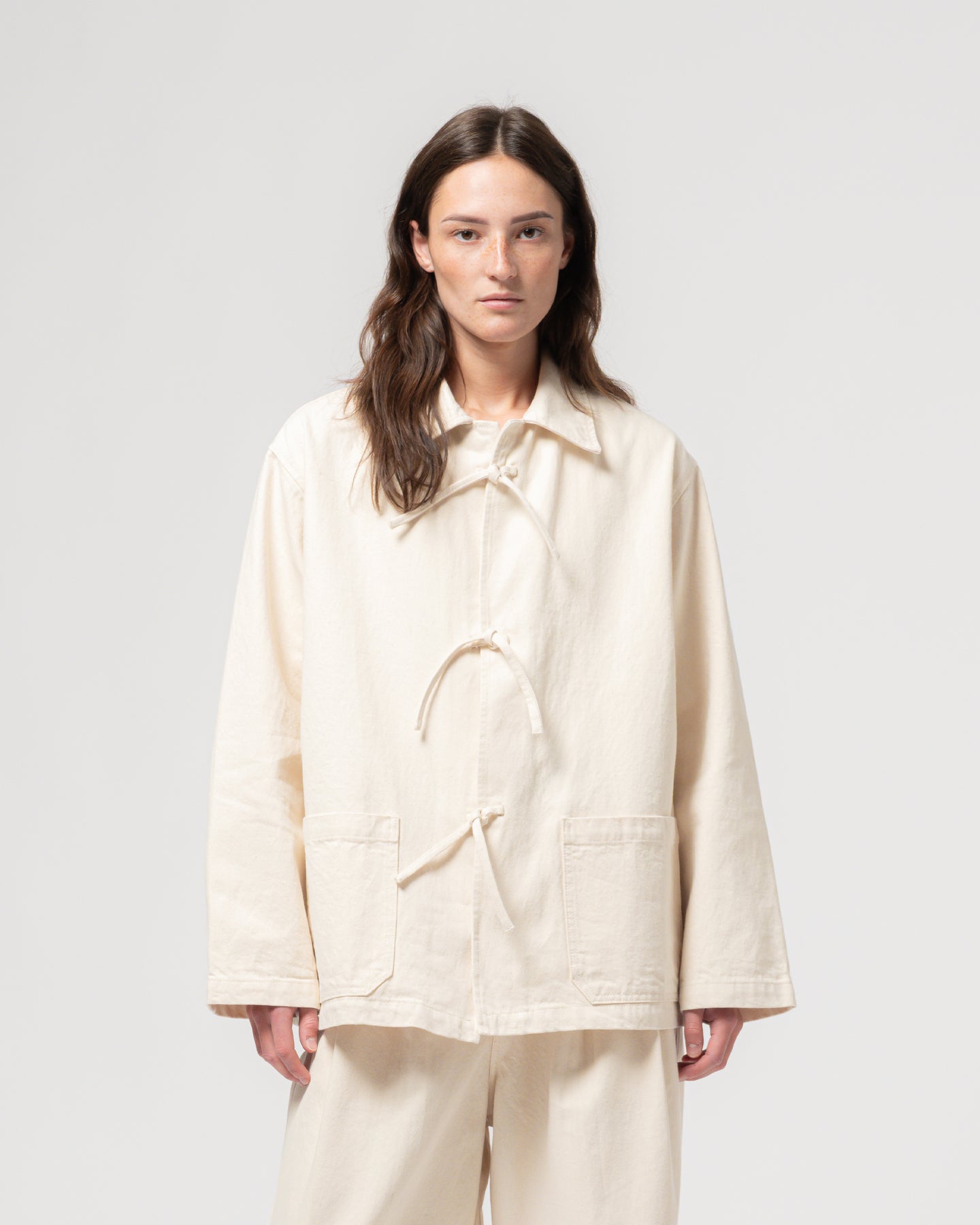 Our Temple Jacket is a boxy worker jacket made from a rugged denim, featuring a unique front tie closure. In addition, conveniently located pockets on the hip add style and practicality.