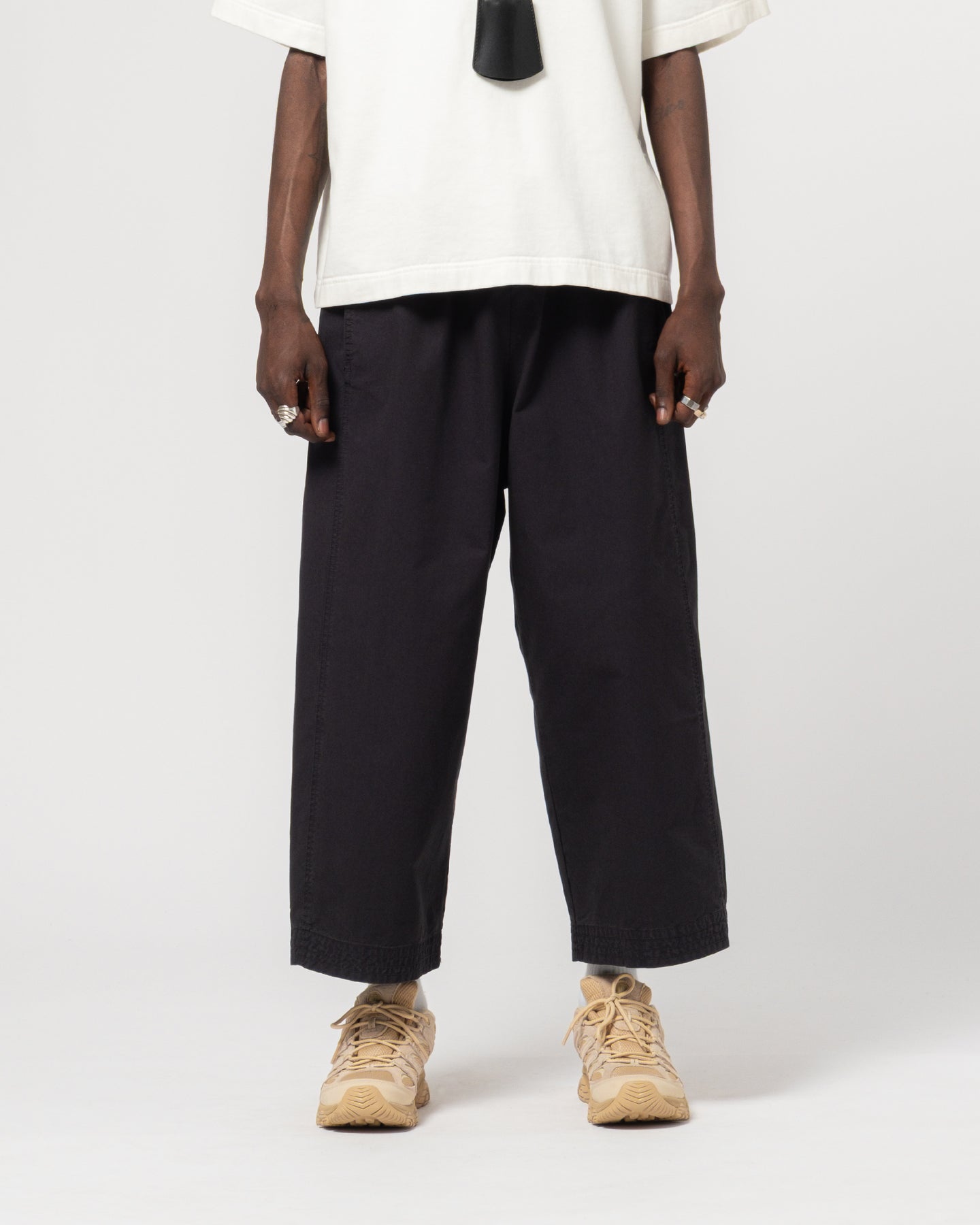 These wide, airy pants are designed for ultimate comfort and style. With a relaxed, flowing silhouette, they offer freedom of movement and a breathable fit. The pull straps at the waist allow for easy adjustments, ensuring a custom fit, while the gusset detail adds a unique, modern touch to the design. Perfect for casual outings or laid-back days.