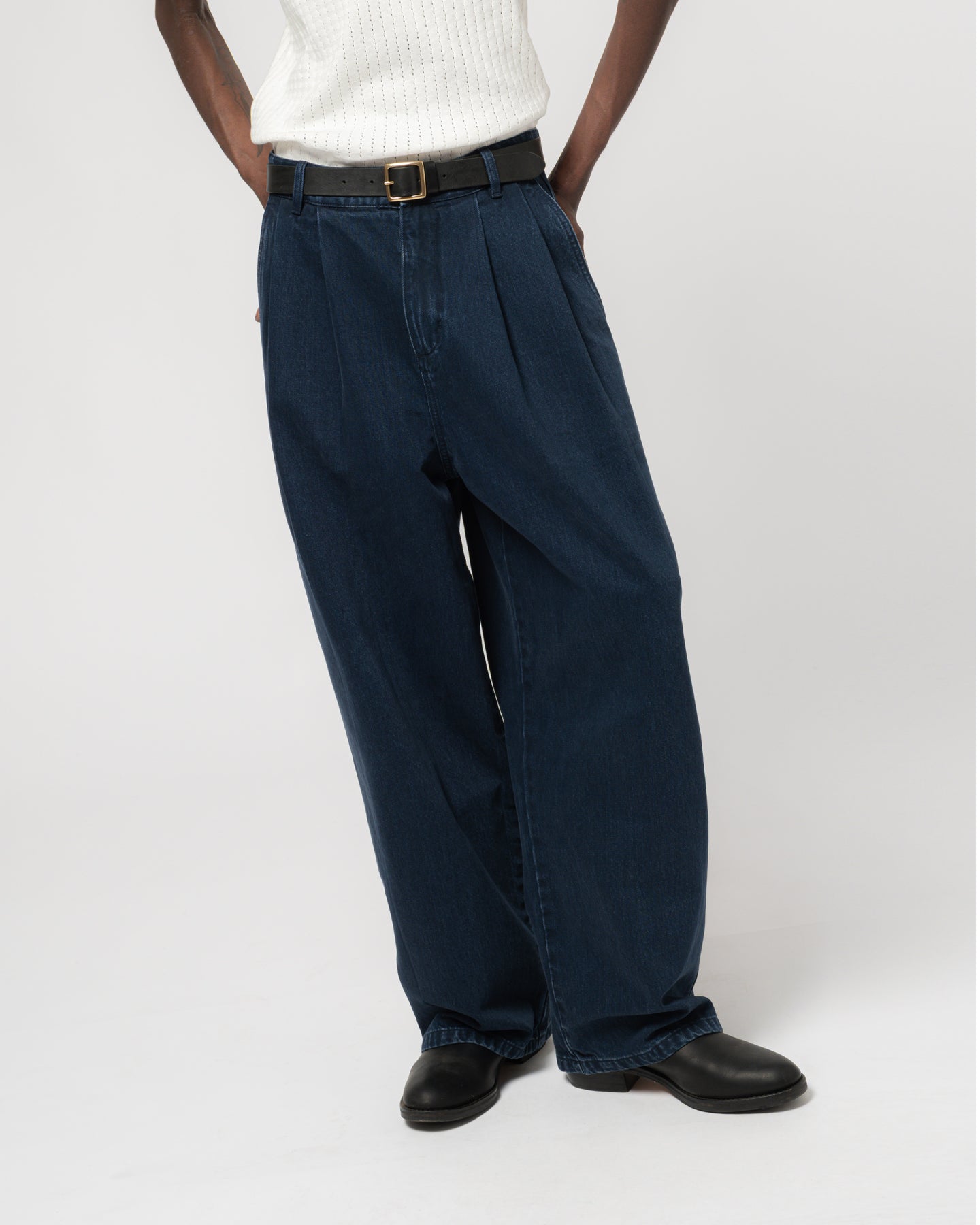 - Pleated Wide Leg Denim