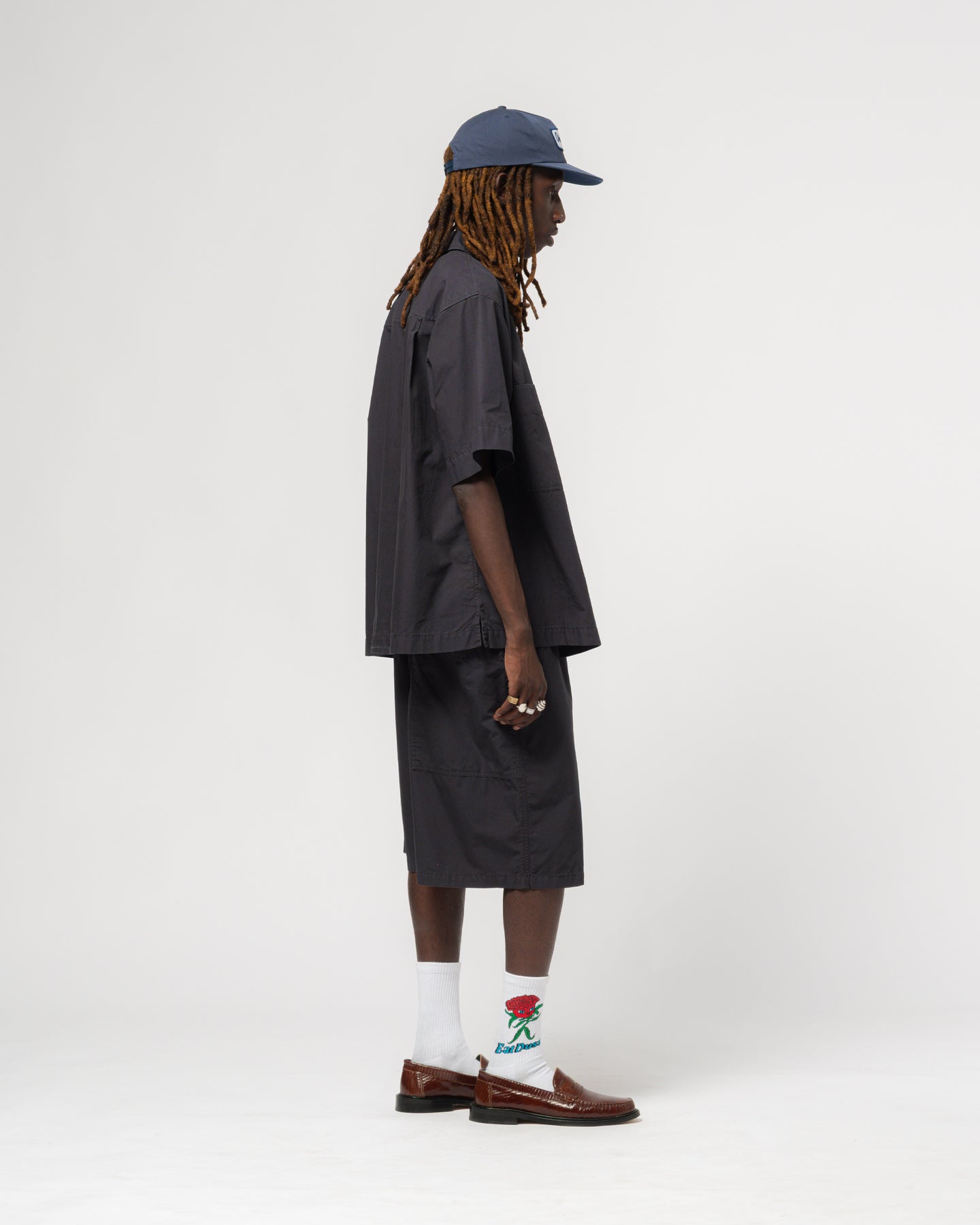 This versatile long overshirt is crafted from a lightweight 100% cotton, offering comfort and ease for everyday wear. Featuring two chest pockets for storage. The short sleeves provide a relaxed fit, making it perfect for layering over tees or worn on its own.